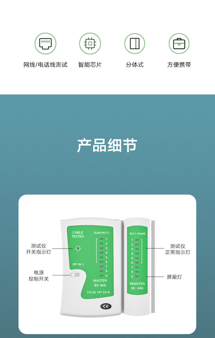 Biaz network cable tester multi-function line tester computer network crystal head telephone line engineering household intelligent test tester gj03