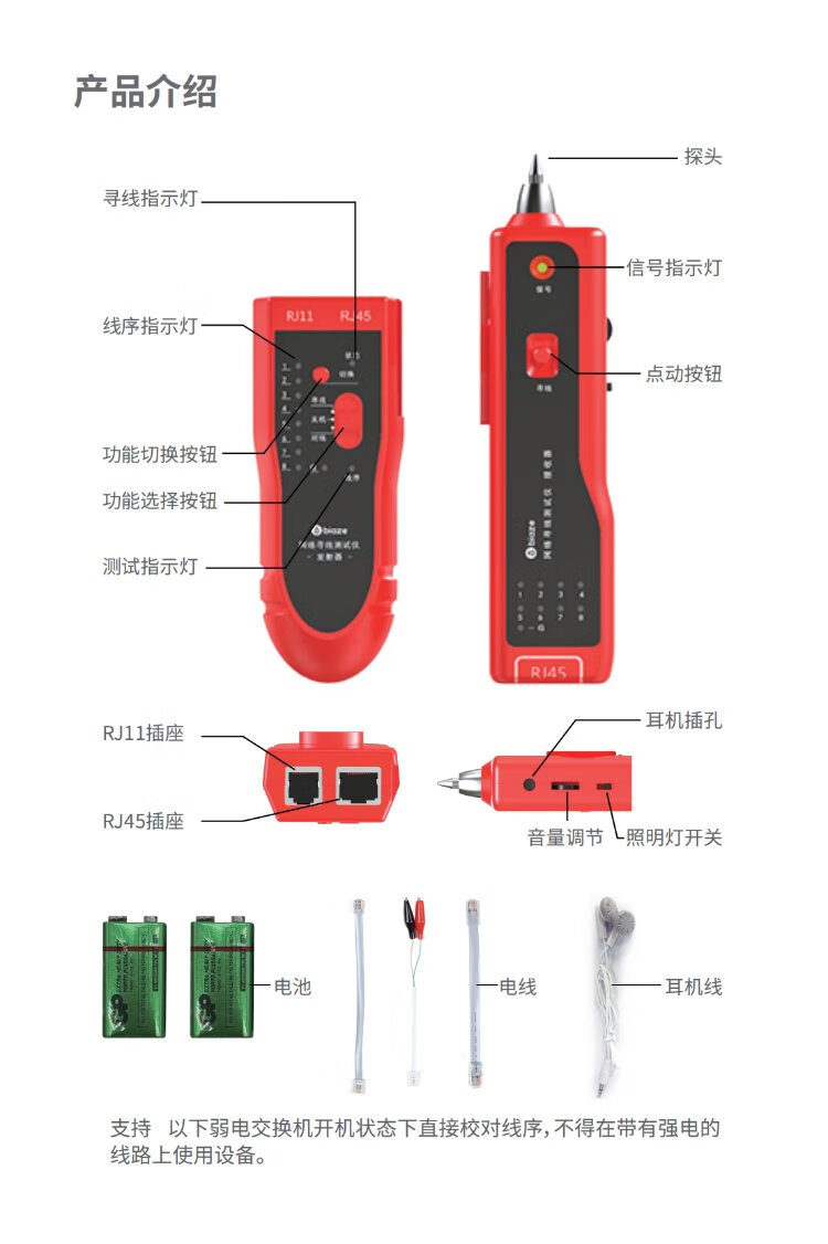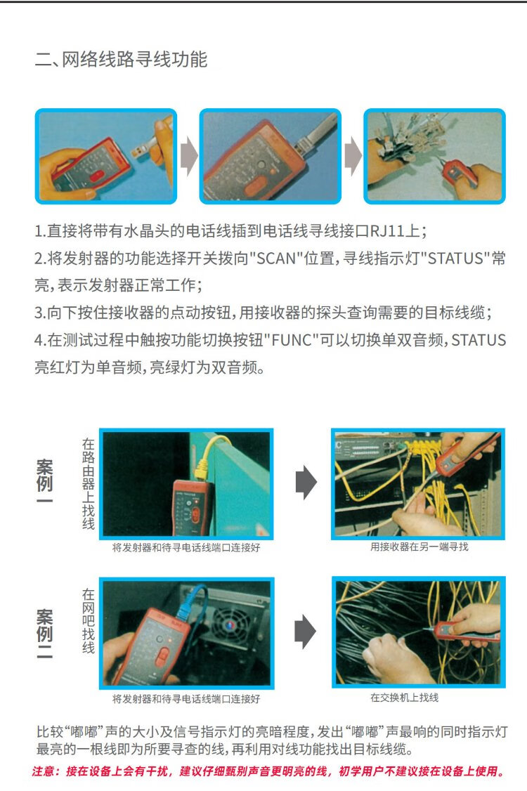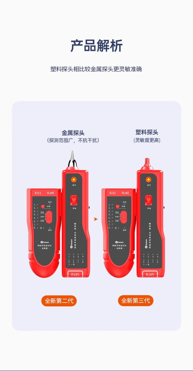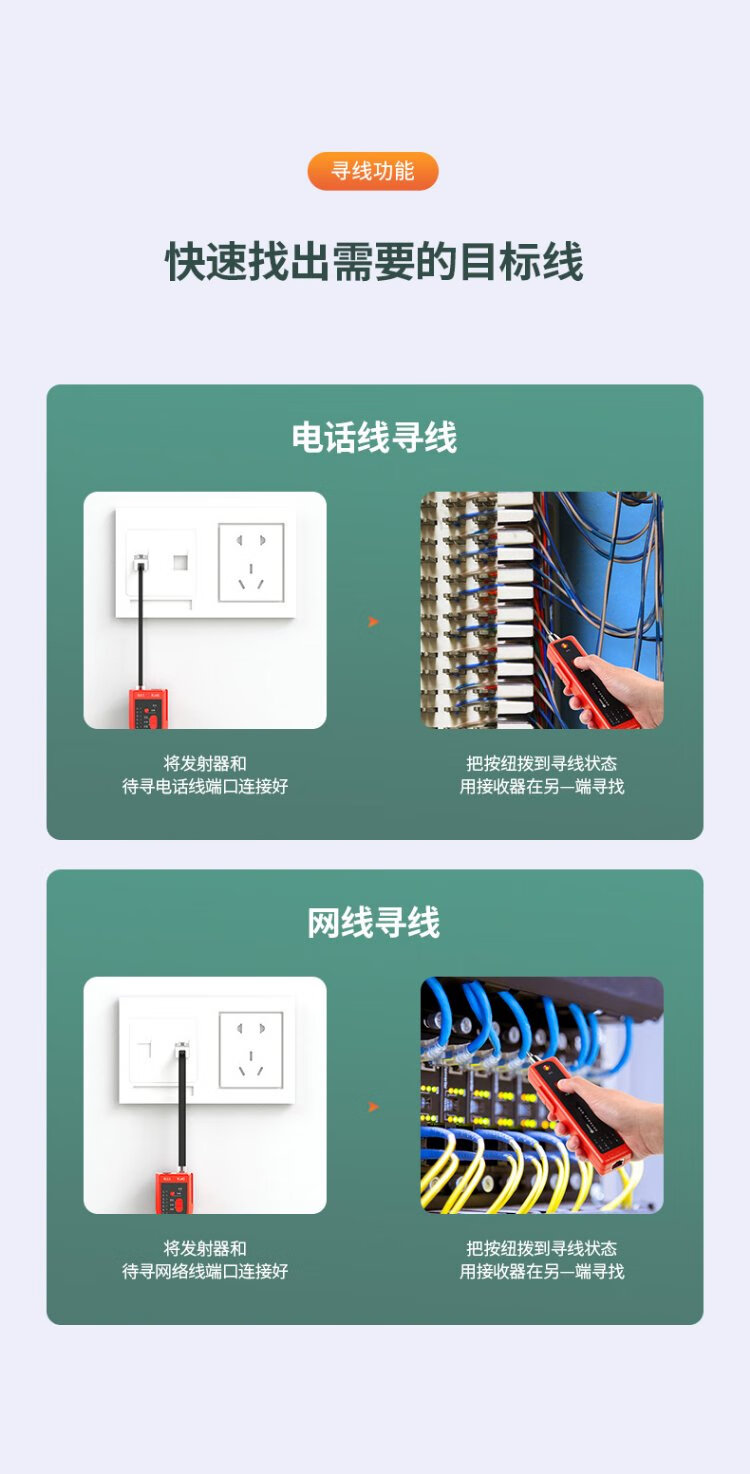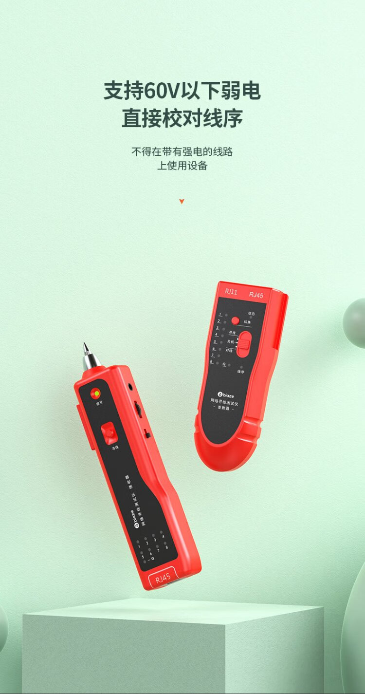 毕亚兹 网络寻线仪 多功能电话网线测线巡线仪器 交换机寻线器 抗干扰60V耐压寻线 查线仪查线器精准型