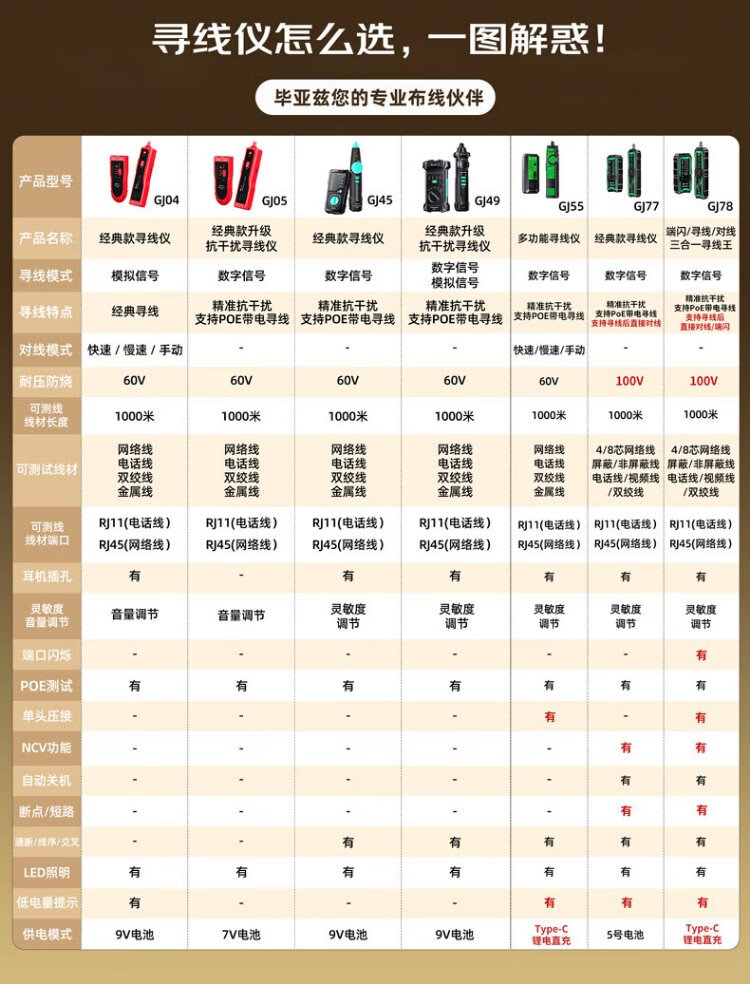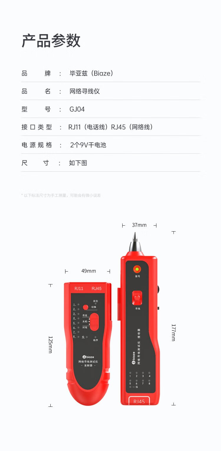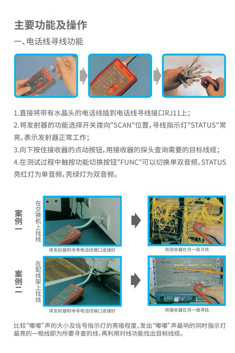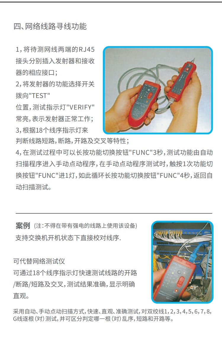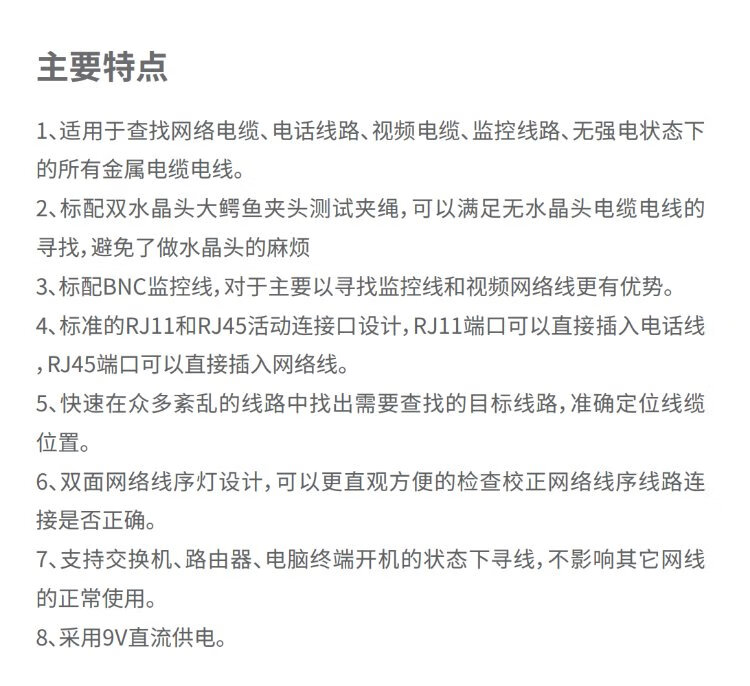 毕亚兹 网络寻线仪 多功能电话网线测线巡线仪器 交换机寻线器 抗干扰60V耐压寻线 查线仪查线器精准型