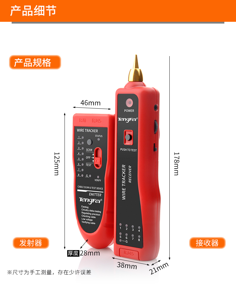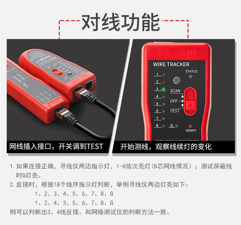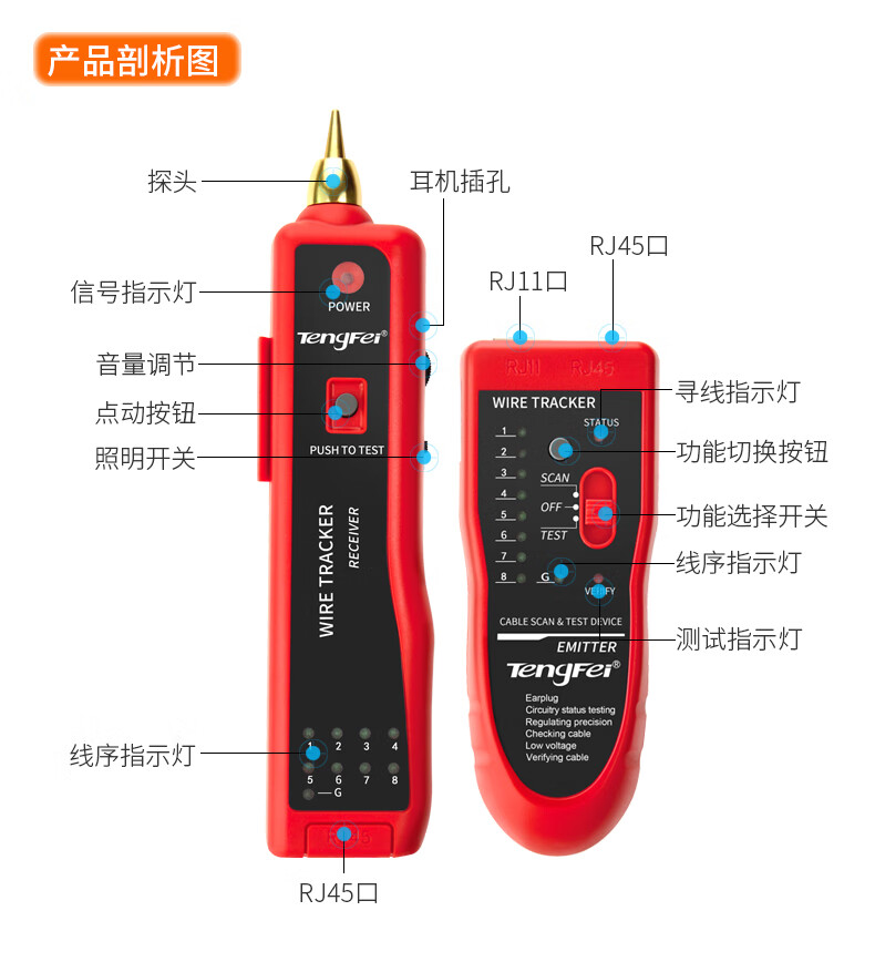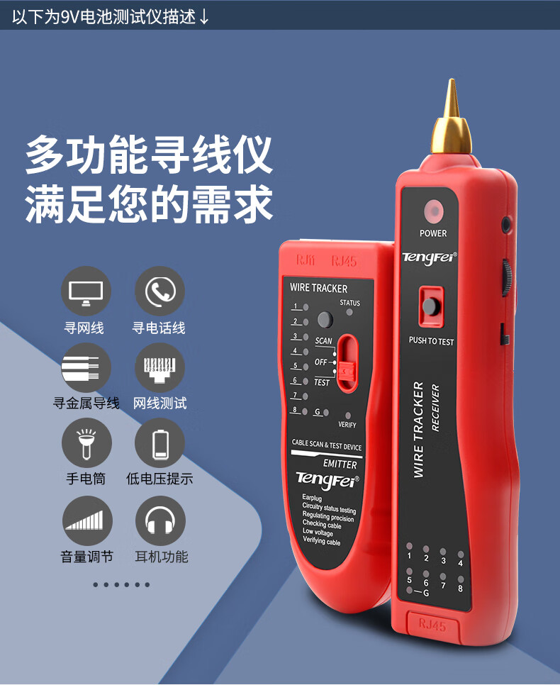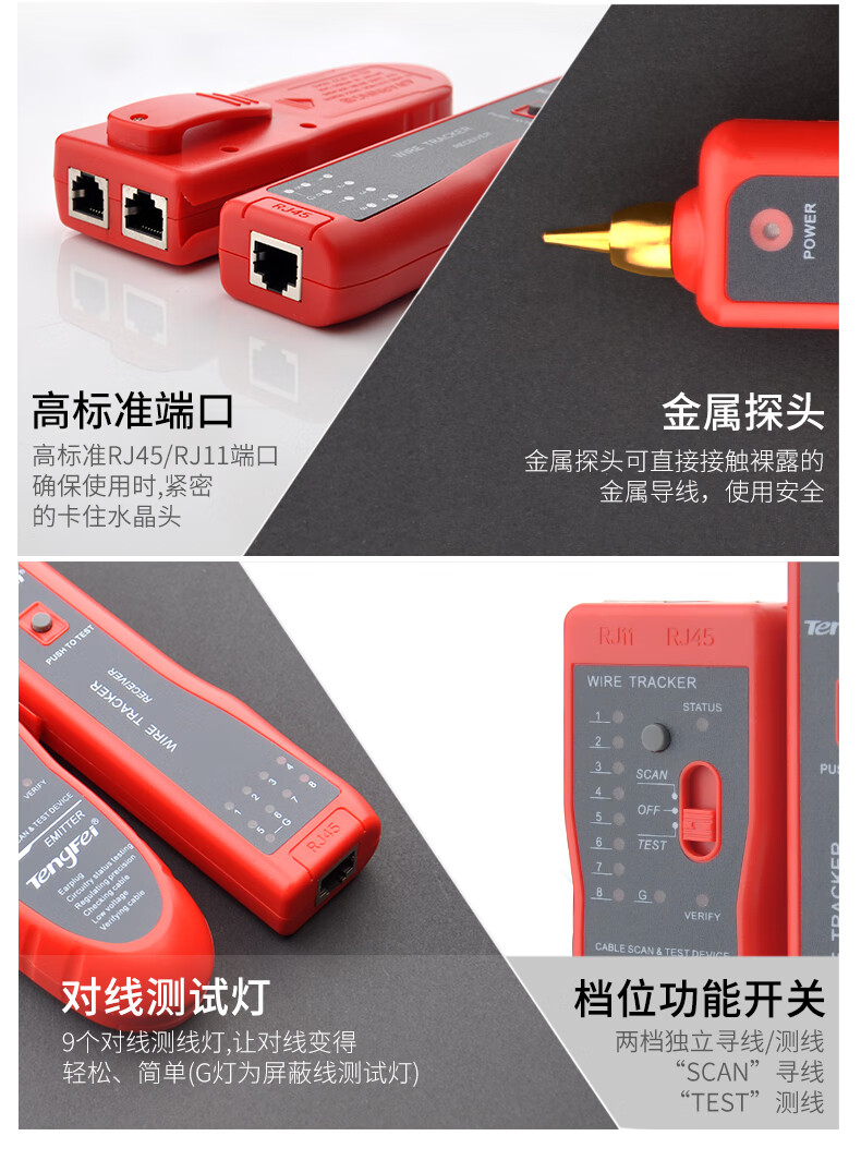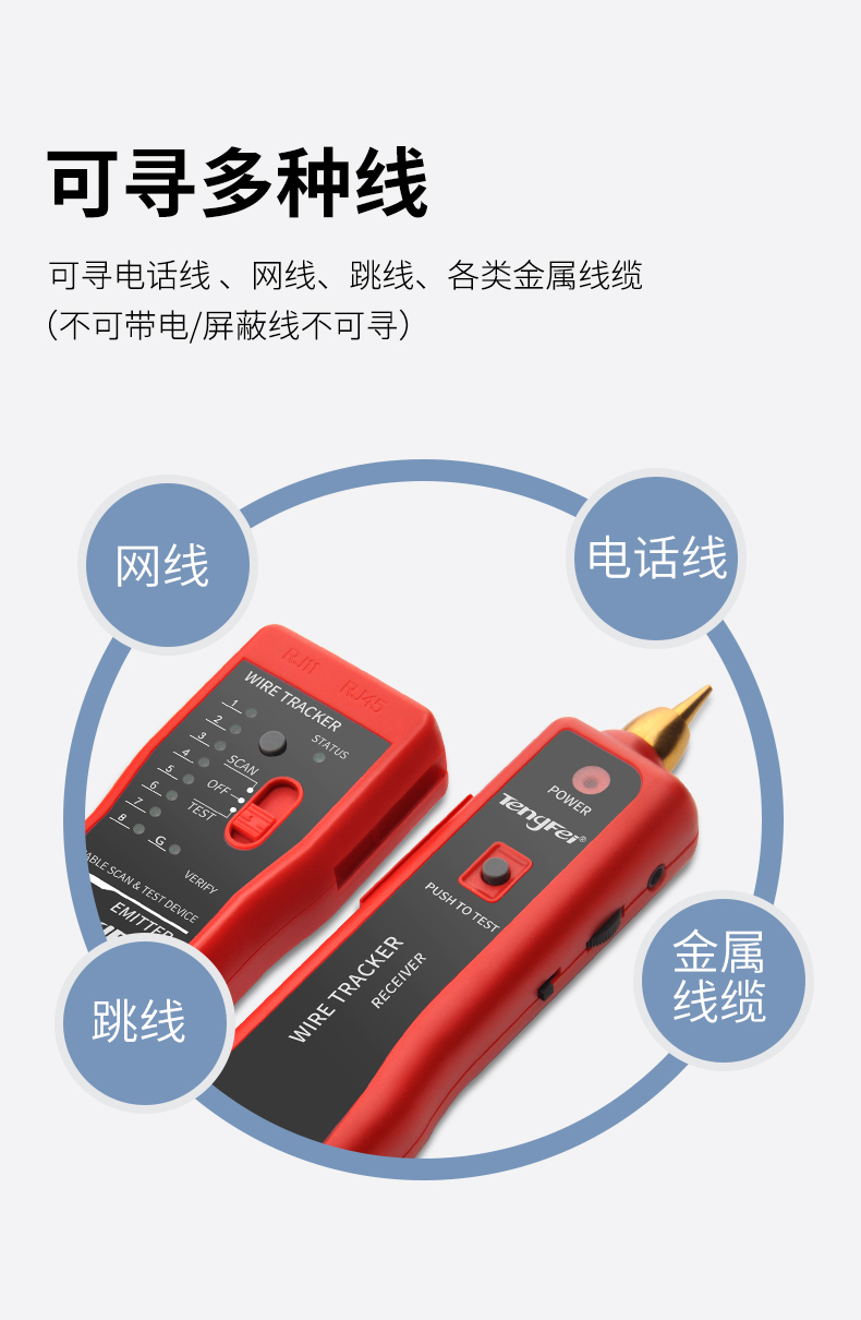 Tengfei 多功能寻线仪寻线器 抗干扰检测仪器网络信号通断工具对线查线器巡线仪找网线电话线测通仪 红色带包+工具齐全 TF-008