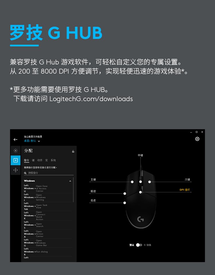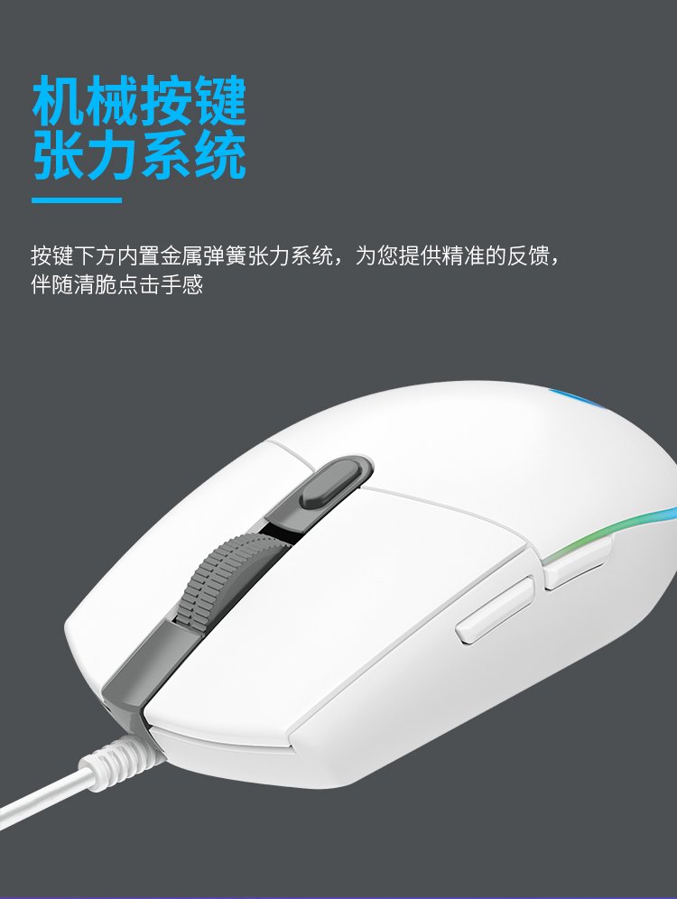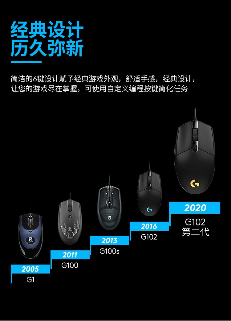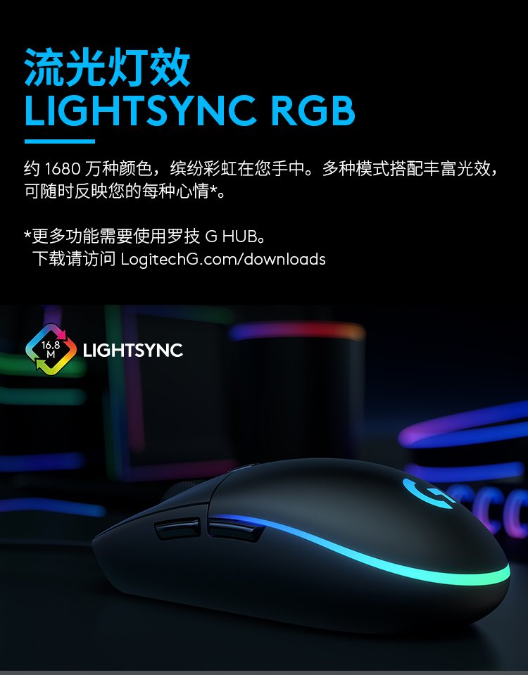 罗技(G)G102第二代游戏鼠标 RGB流光灯效鼠标 轻量化 游戏级8000DPI传感器 黑色 200-8000DPI