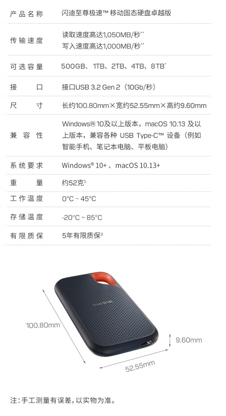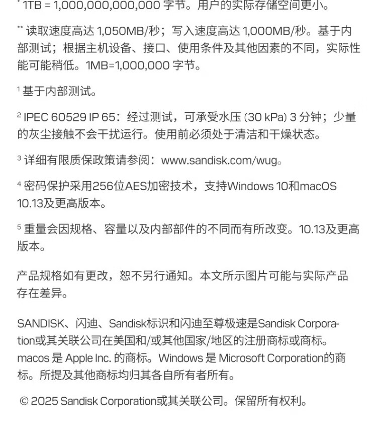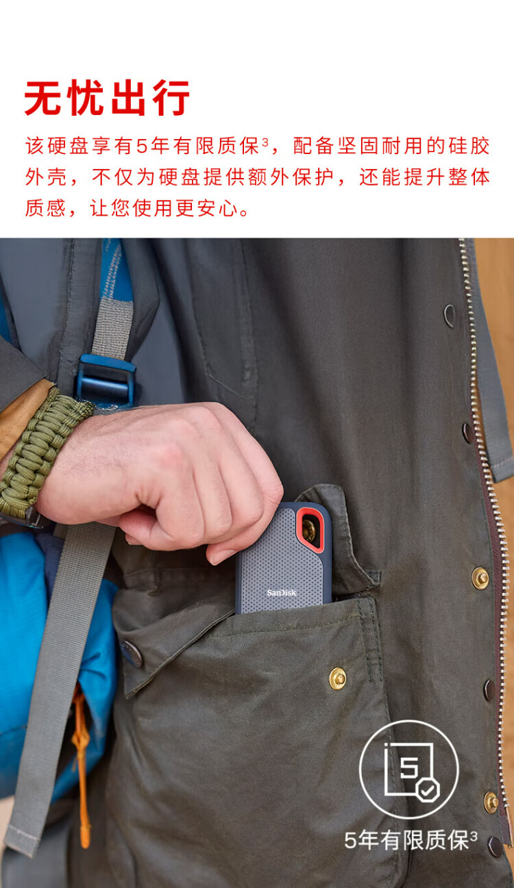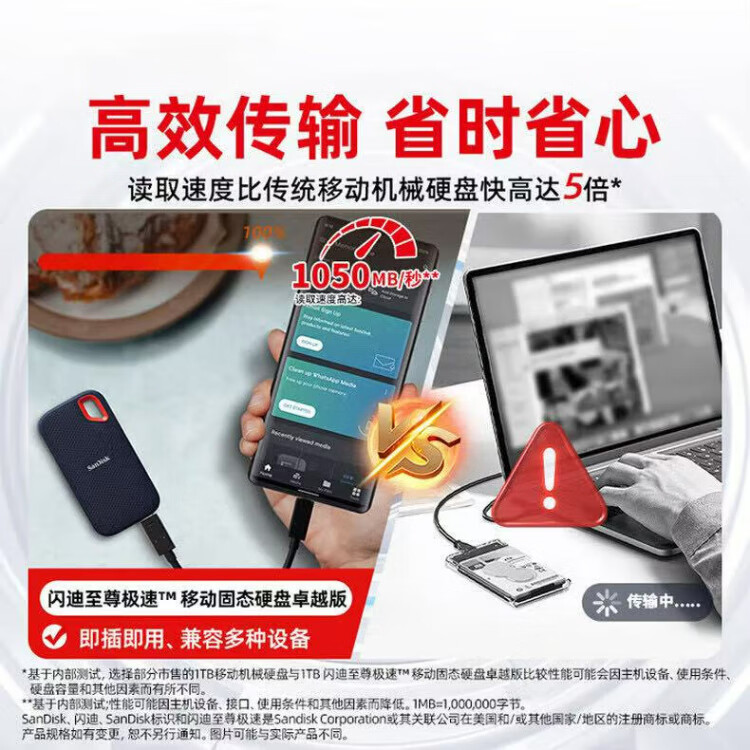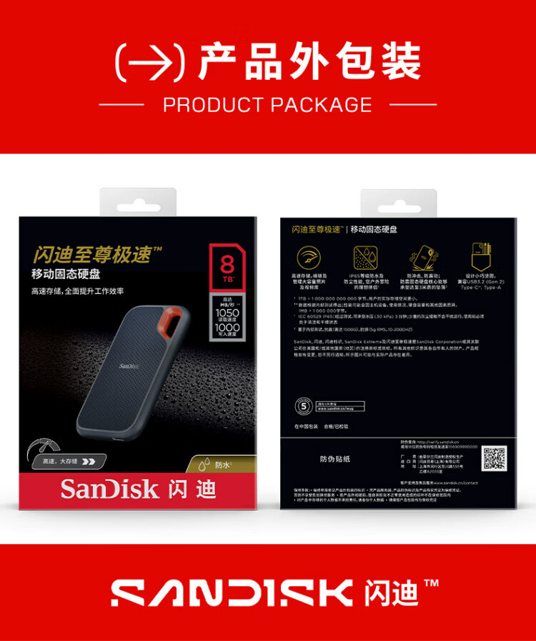 闪迪(SanDisk)1TB Type-c USB3.2 NVMe移动固态硬盘(PSSD)E61卓越版 1050MB/s三防保护 手机笔记本电脑外接SSD