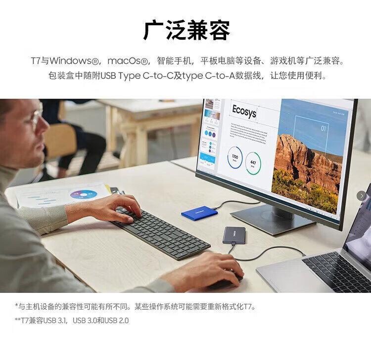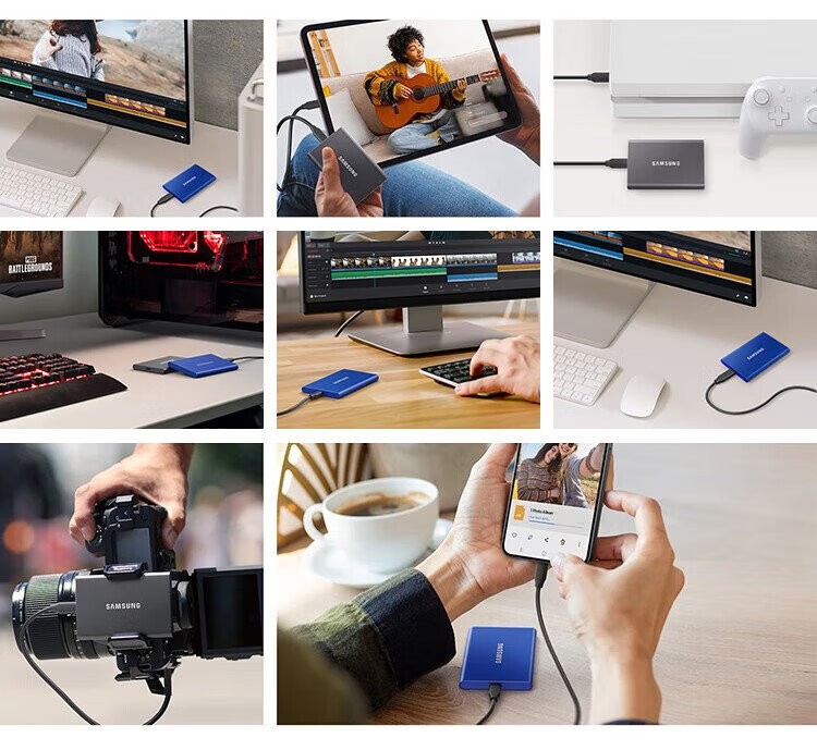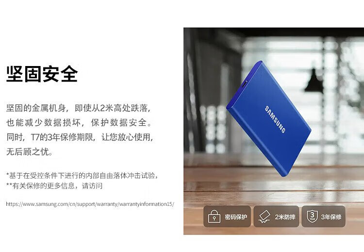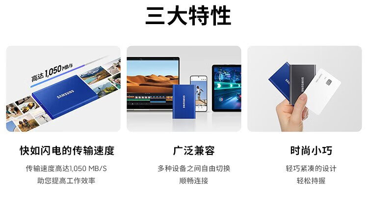 三星(SAMSUNG)4TB Type-c USB 3.2 移动固态硬盘(PSSD) T7 灰色 NVMe传输速度1050MB/s 手机直连笔记本外接