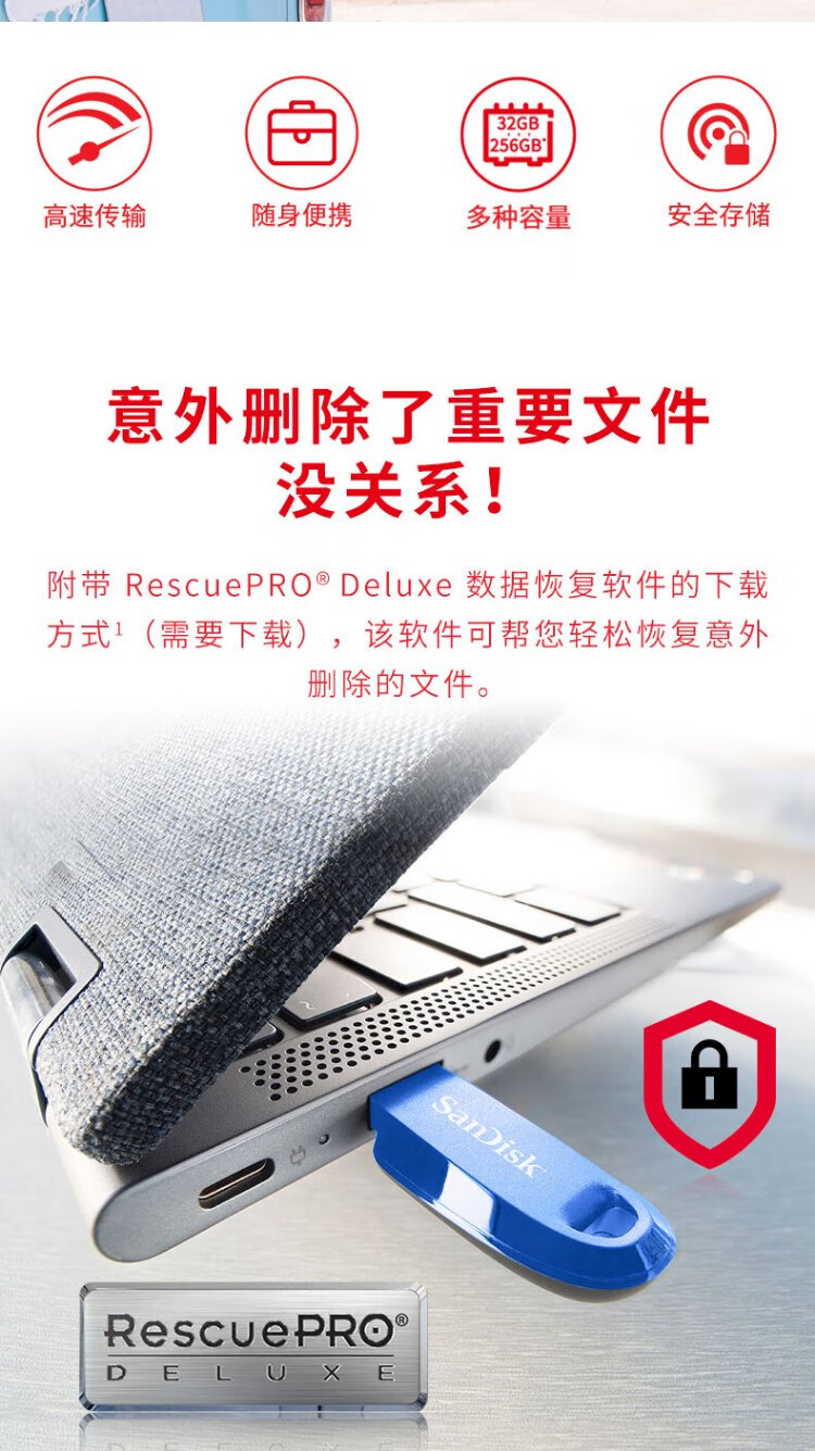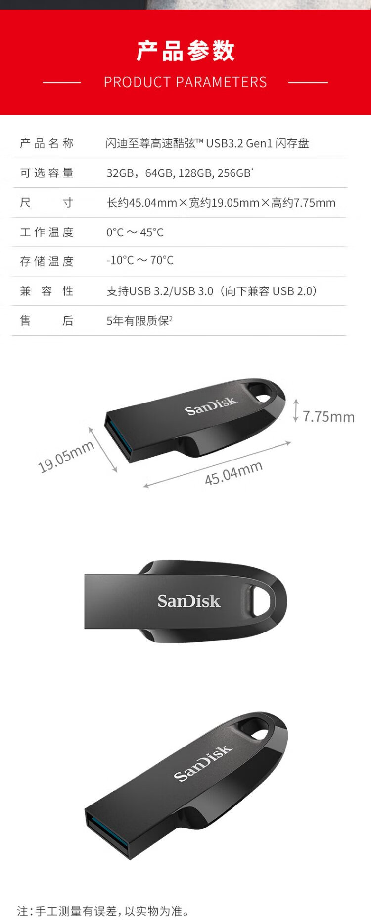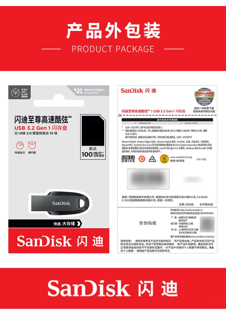 SanDisk 64GB USB3.2 U disk CZ550 black reading speed 100MB/s security encryption data recovery learning office computer car high-speed large-capacity USB flash drive