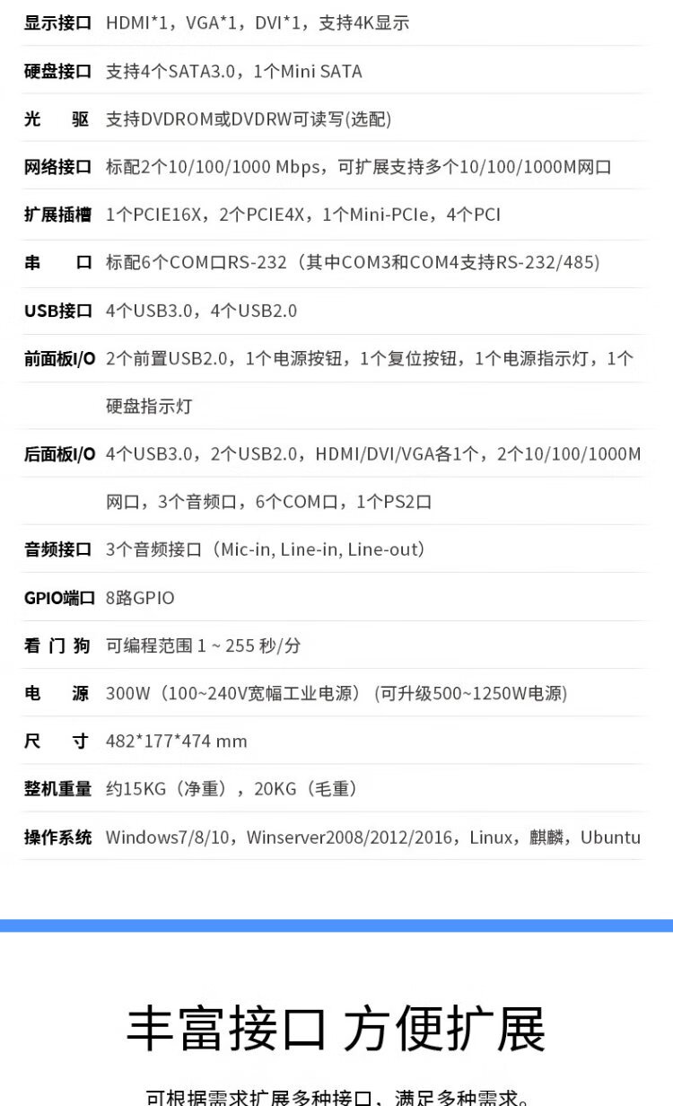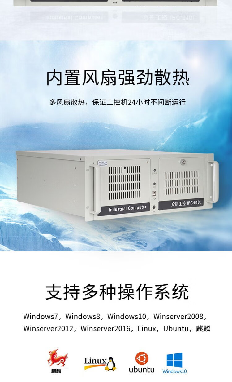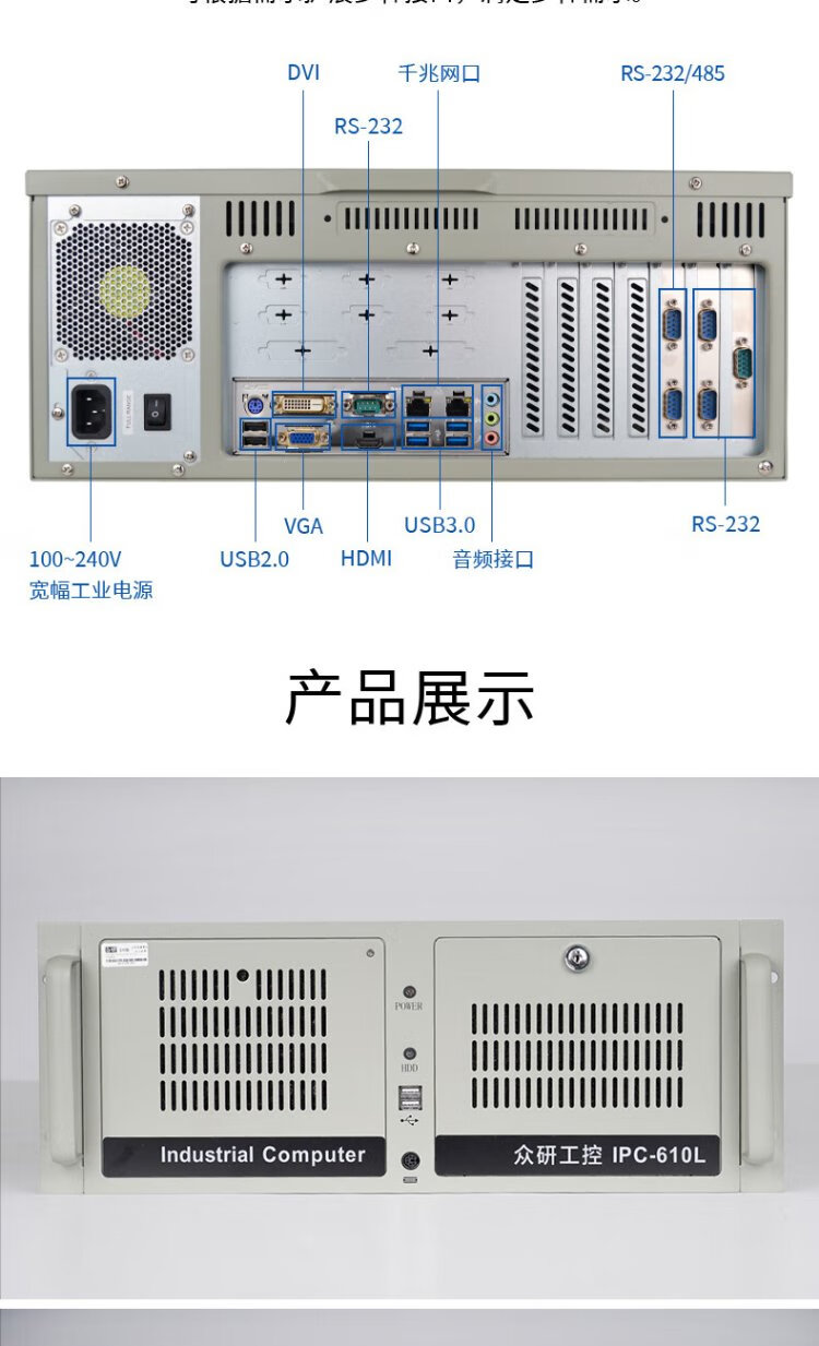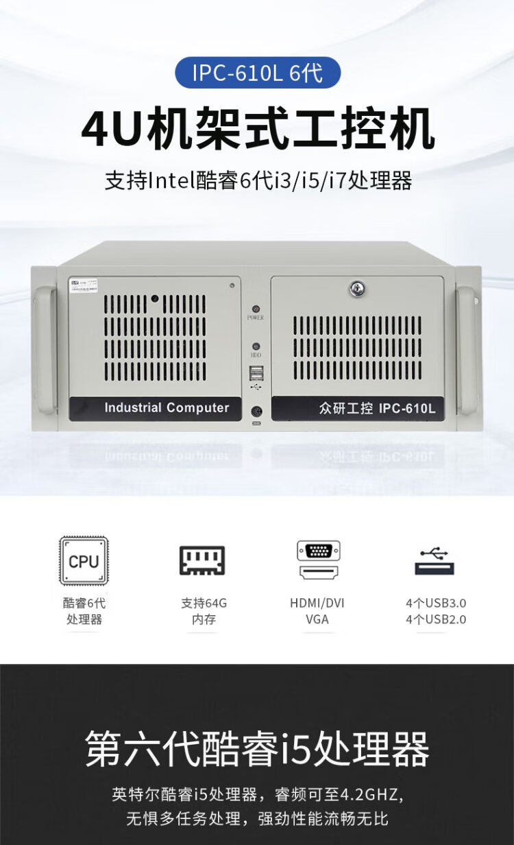 众研 IPC-610L原装工控机 机器视觉 工业控制 兼容研华 FCC/CE/3C 节能认证 I7-6700四核/16G/1T硬盘