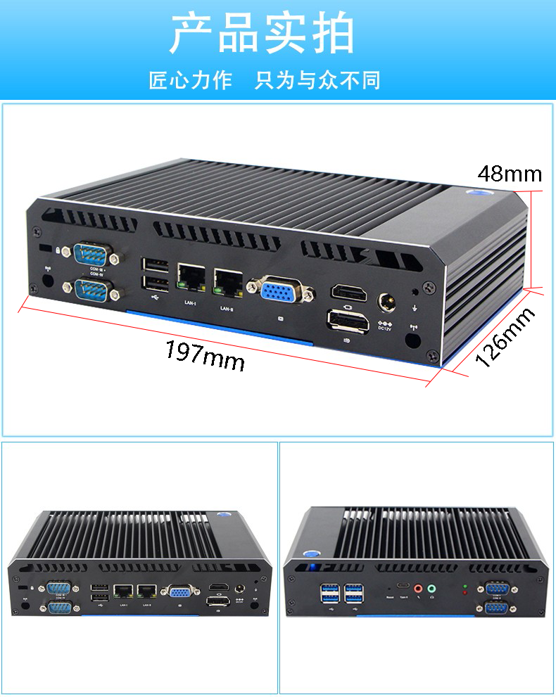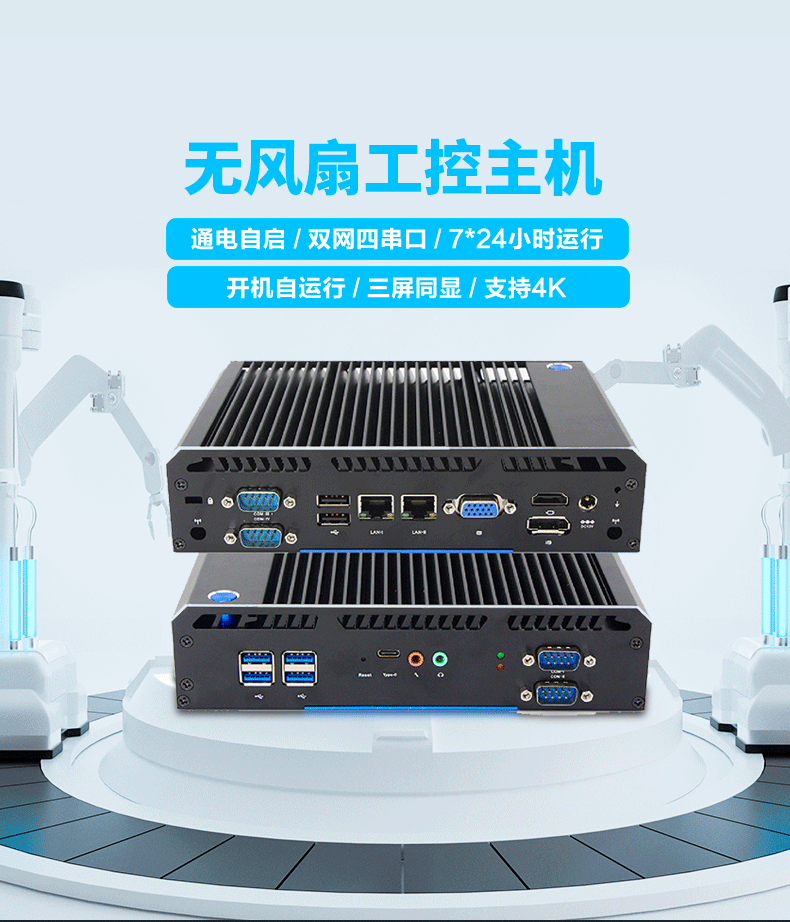 光秒嵌入式工控主机双千兆全封闭4K无风扇工业电脑防尘防震抗干扰车载电脑机器视觉PC耐高低温4COM口 全封闭无风扇工控机酷睿I7-5500U 16G/256G SSD WIFI