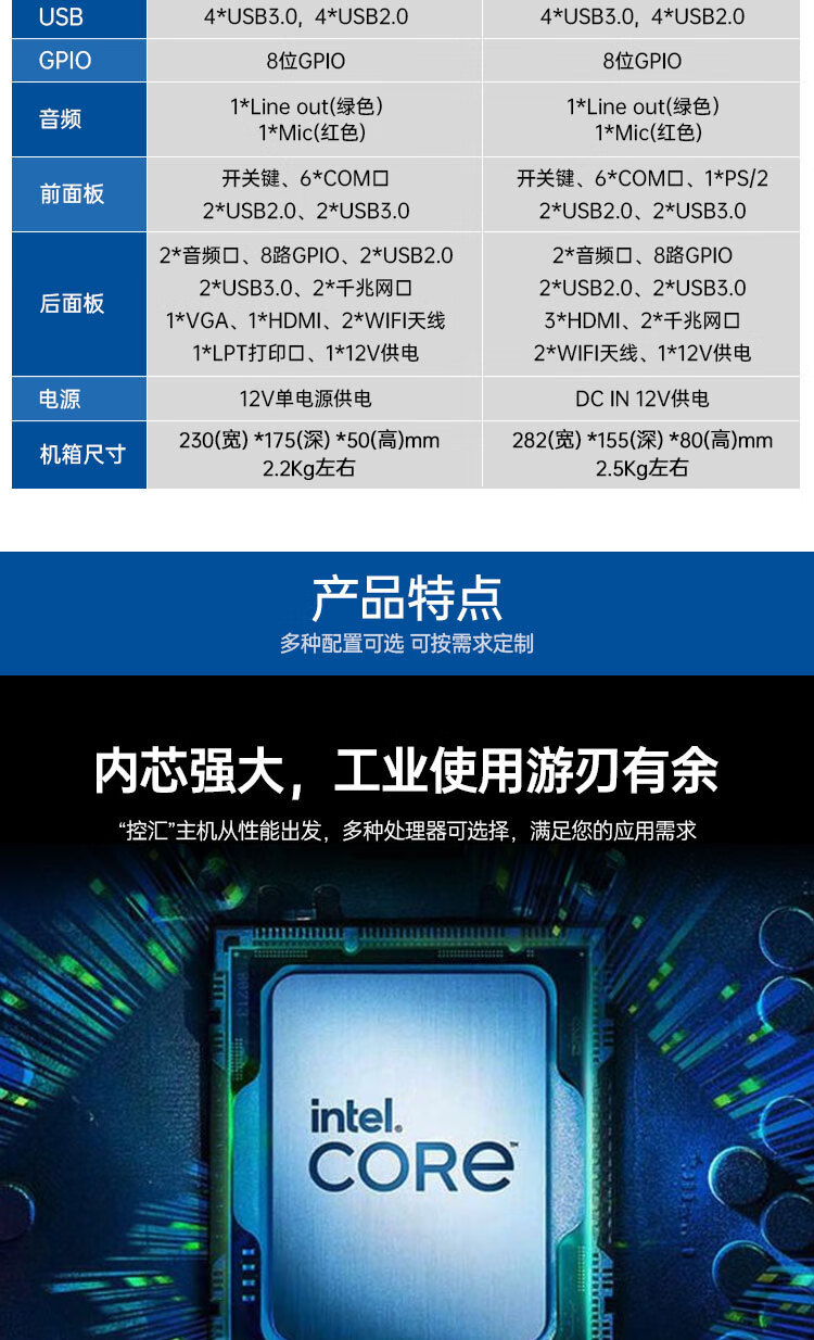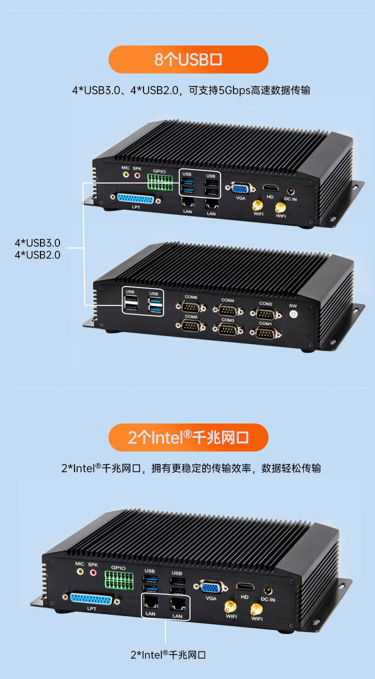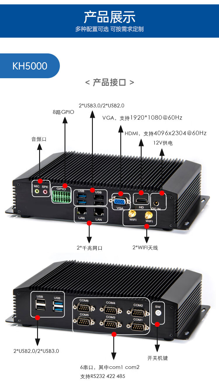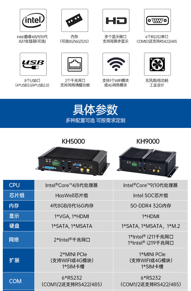 eip控汇 KH5000/9000迷你工控机无风扇服务器4-10代处理器电脑etc智能8位GPIO i7-10750H 32G/512GSSD
