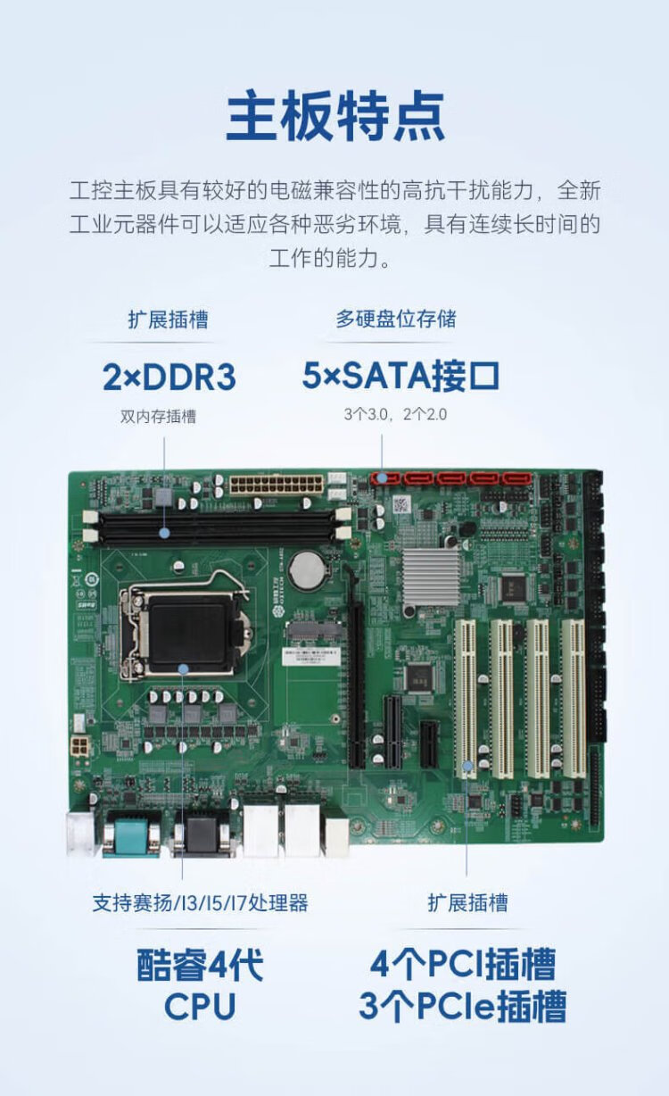 研勤工控机酷睿4代4U工控主机双网6到10串口工业主机支持XP系统工控电脑 4U工控机(2个PCI插槽) I7-4770S/8G内存/256G固态硬盘送键鼠