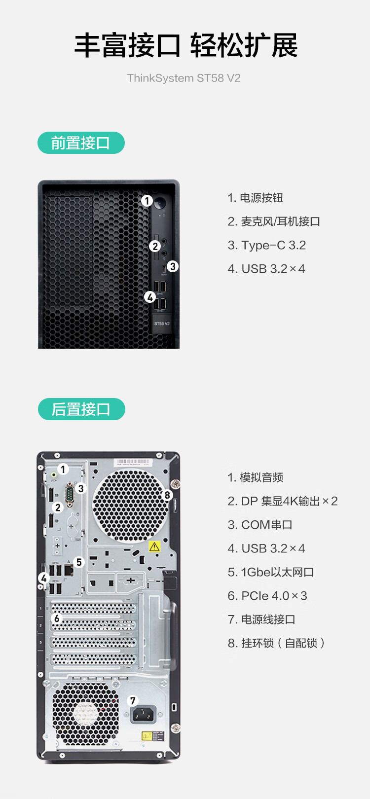 Небольшой сервер Lenovo ThinkSystem ST58 v2 высотой 4U с четырехъядерным процессором Xeon E-2324G, 3,1–4,6 ГГц, 64 ГБ памяти, 2, твердотельный накопитель корпоративного класса, RAID1, 1,92 Тбайт.