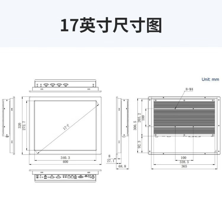 研勤工控一体机12.1/15/17寸工业平板电脑触摸屏IP65防尘防水电容触控J1900工业显示器人机界面 15英寸电容屏/J6412CPU 8G内存/512G固态硬盘