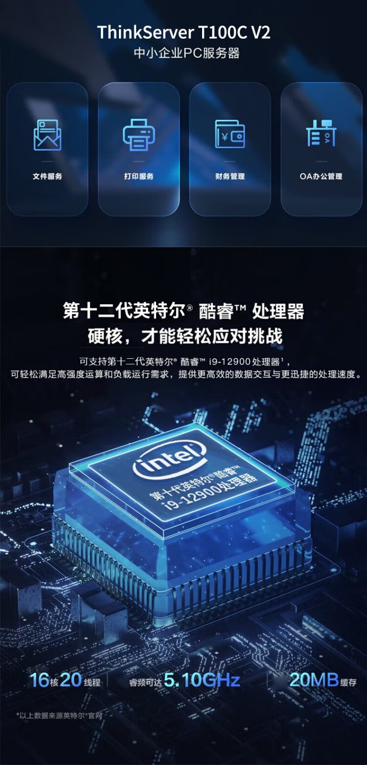 联想(Lenovo)服务器主机 T100C V2塔式服务器主机奔腾G7400/酷睿i3/i5/i7可选 金蝶用友ERP财务办公 酷睿I3-12100 四核3.3G 16G内存丨1T SATA硬盘