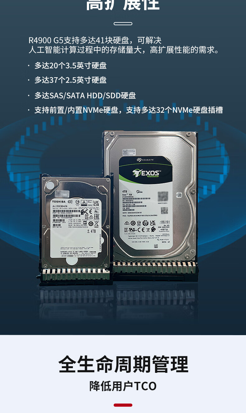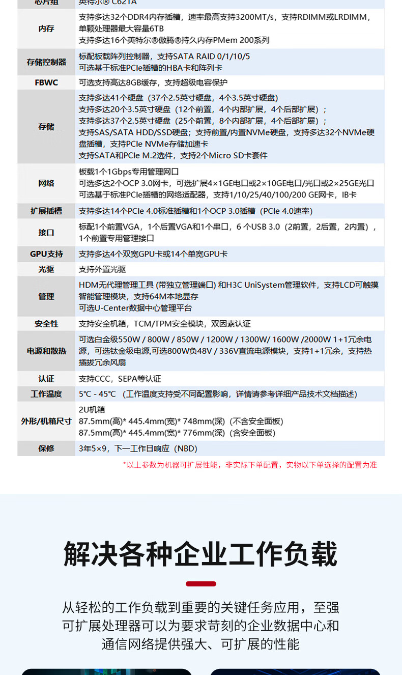 新华三(H3C)【R4900 G5】双路2U机架式服务器主机 DeepSeek部署 GPU深度学习虚拟化数据库存储AI训练 企业定制 2颗银牌4316 40核80线程2.3GHz 【存储推荐】64G内存丨3块8T硬盘丨RAID5