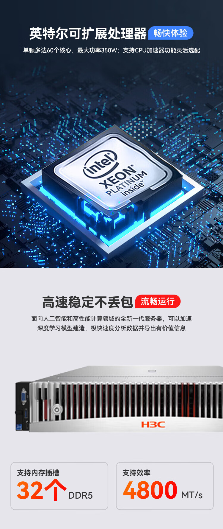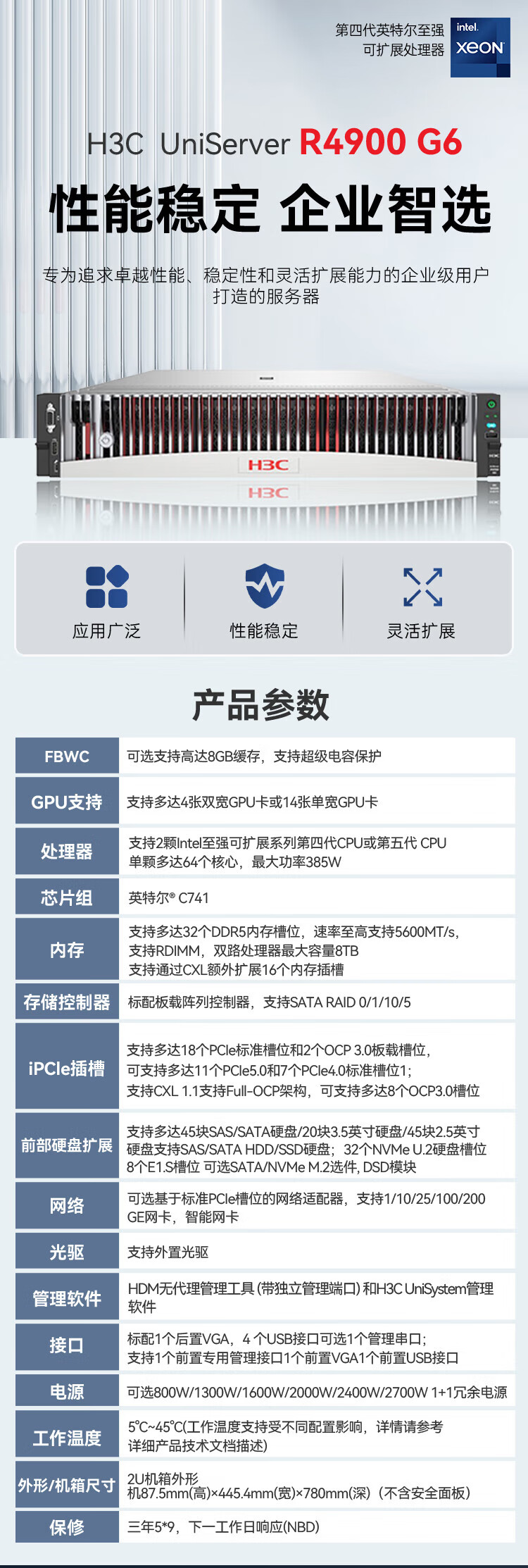 New H3C R4900 G6 dual-socket Xeon 4th and 5th generation 2U rack server host database virtualization DeepSeek deployment enterprise customization 2 8462Y+ 64 cores 128 threads 2.8GHz 128G memory丨2 3.84T+3 2.4T 10K
