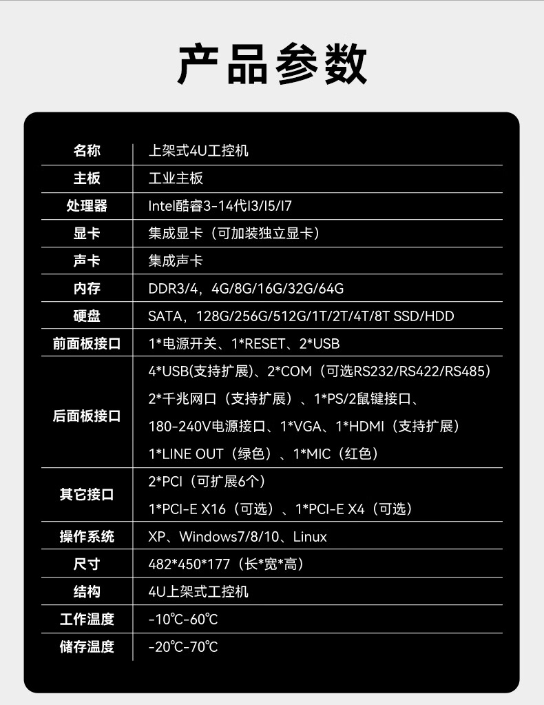 VJW Промышленный компьютер высотой 4U Высокопроизводительный серверный хост поколения Core 3-14 Компьютер для установки в стойку Промышленный компьютер 6USB/двойная сеть/поддержка PIC/PCIE Core I3-6100 Твердотельный 32G/512G/2T Механический/независимая видеокарта