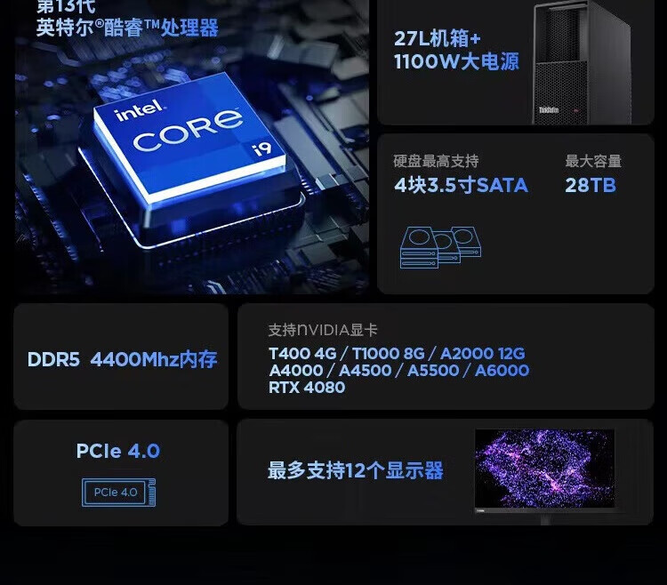 联想(Lenovo)ThinkStation图形工作站塔式台式机 deepseek 高性能AI训练仿真 设计3D游戏渲染商用电脑 P360丨i5-12500 6核 3.0GHz 8G内存丨1TB硬盘丨集显