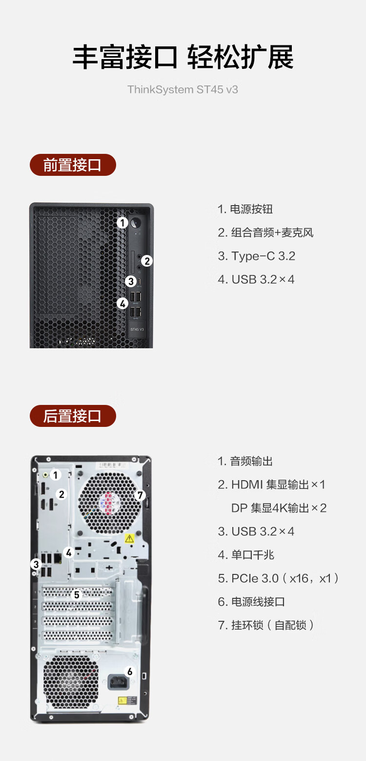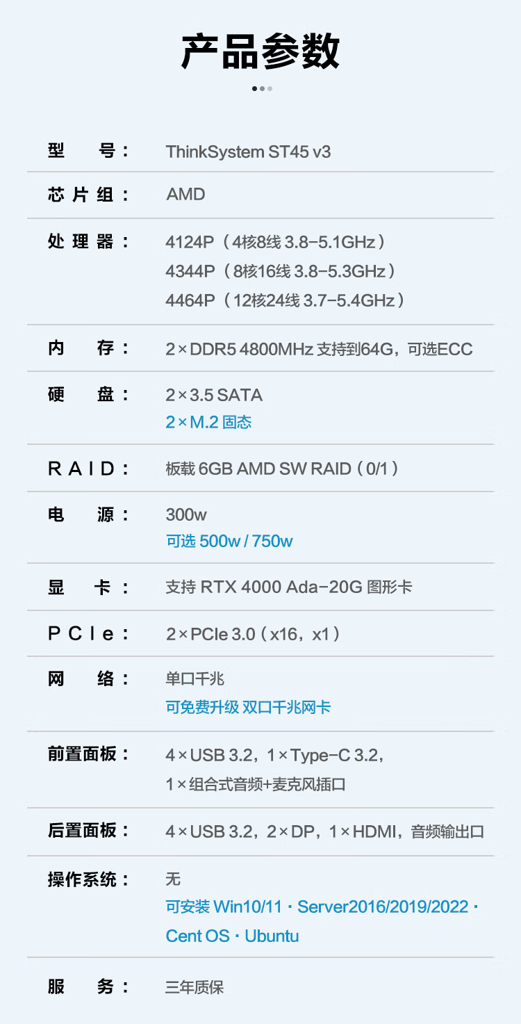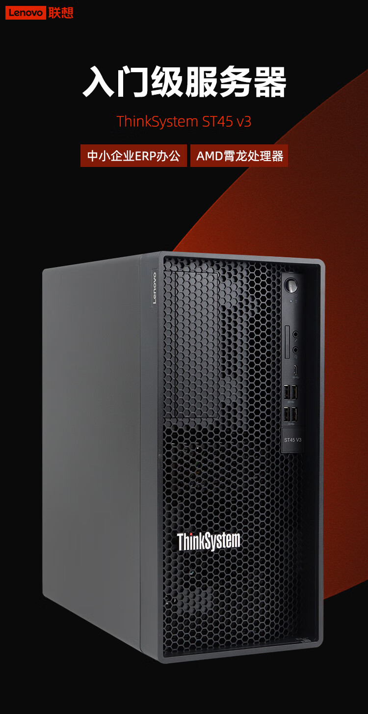 Lenovo (Lenovo) ThinkSystem ST45 v3 petit serveur tour 4U hôte AMD EPYC 4464P douze cœurs 3,7-5,4 GHz 64 Go de mémoire 丨2 1,92 T SSD de classe entreprise 丨RAID1
