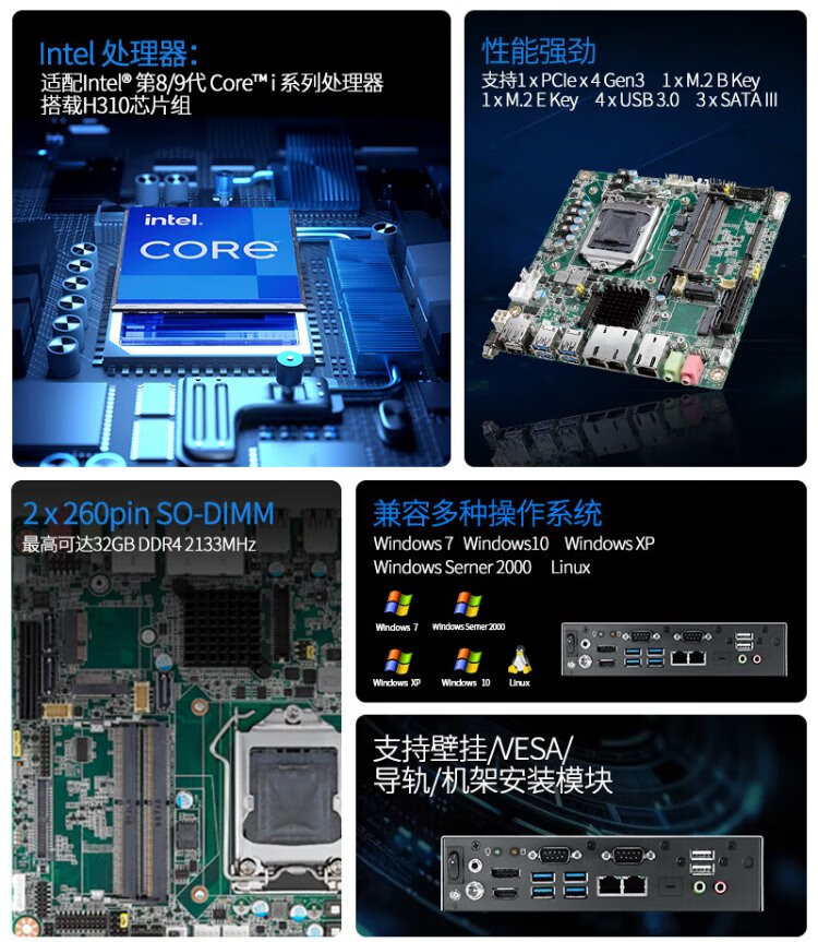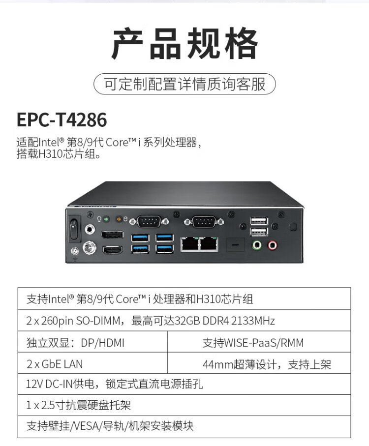 DWTPC Advantech Advantech ordinateur industriel EPC-T4286 ordinateur industriel nimi intégré 8/9 génération petit hôte mini ordinateur industriel hôte I5-8400/16G/512G SSD/adaptateur secteur EPC-T4286