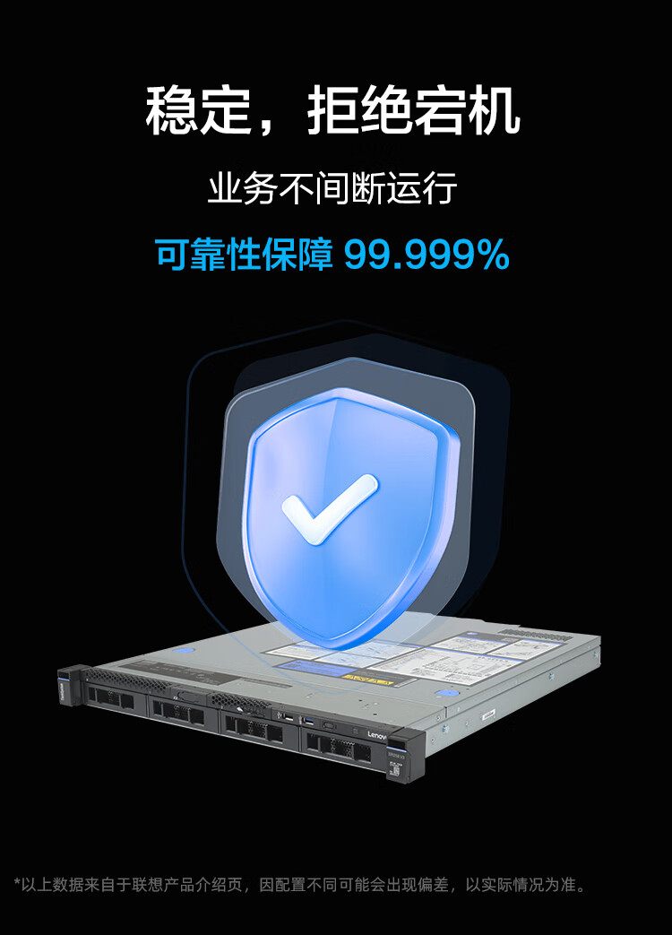 联想(Lenovo)ThinkSystem SR258 v3 单路1U机架式服务器主机 至强E-2468 八核2.6-5.2GHz 64G内存丨2×1.92T企业级固态丨RAID1