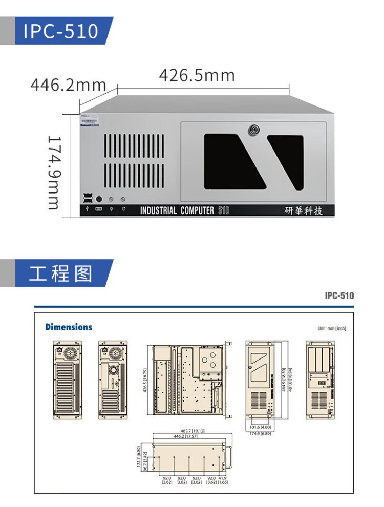 Yanhu Advantech Technology Advantech Industrial Computer Original Genuine IPC-510/610L Rack-mounted Chassis 4U Industrial Computer Server Supports XP System Expandable Multiple Serial Ports Advantech IPC-610L Upgrade Customized Deposit Consult Customer Service