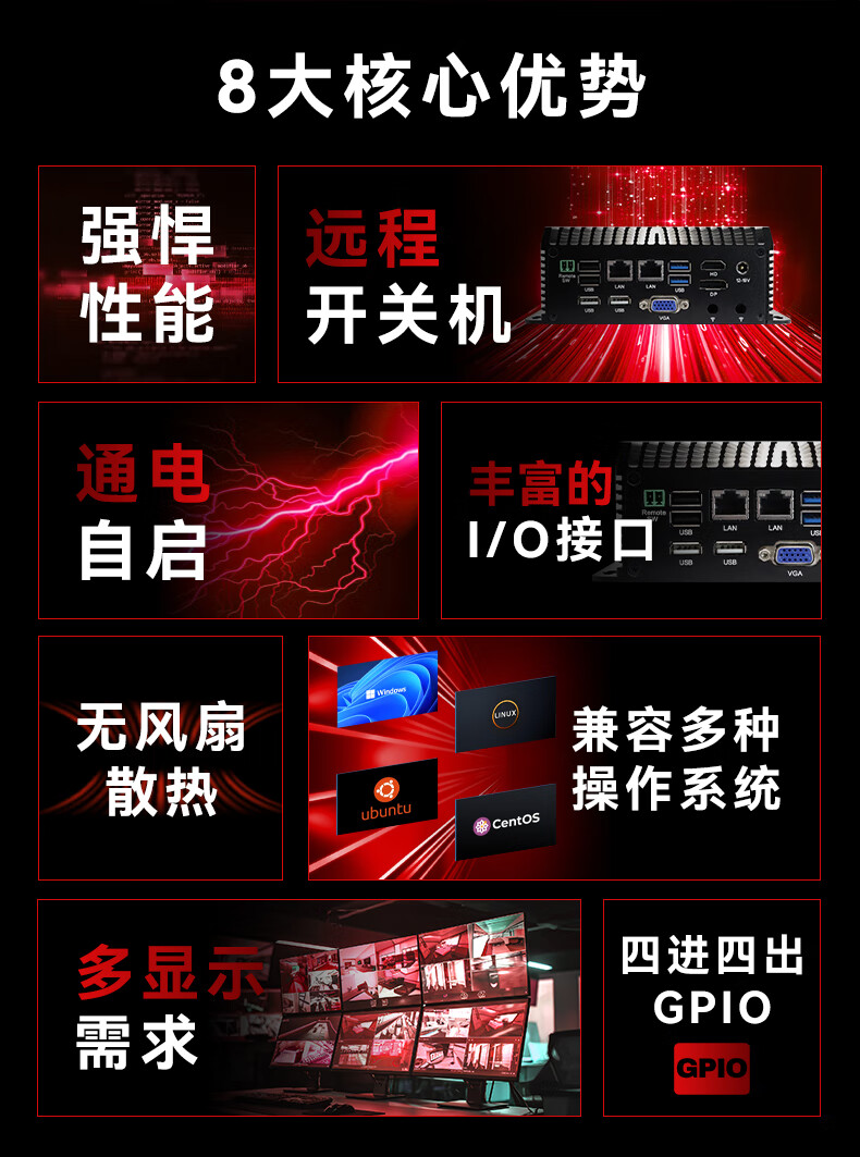 INCEER mini-hôte de contrôle industriel sans ventilateur, ordinateur industriel entièrement fermé, bureau d'affaires intégré, mini ordinateur de bureau pratique, serveur informatique Intel N95 (double réseau) 8G/256G/WIFI à semi-conducteurs