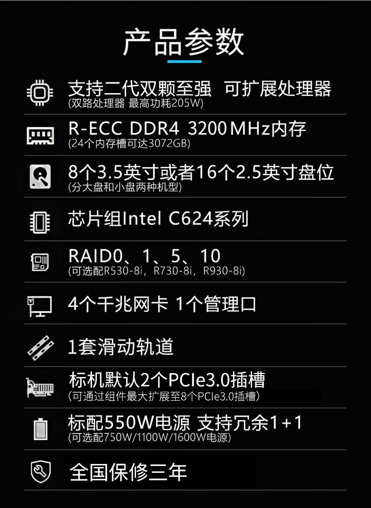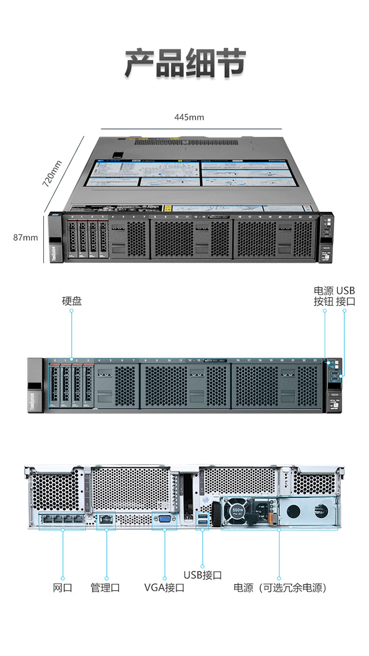 Lenovo server host SR650 HR650X rack-mounted 2U chassis dual-channel Xeon GPU deep learning virtualization computer DeepSeek local deployment customization SR650 1 6230丨20 cores 2.1G 128G丨2 960G solid state + 5 2.4T丨Promotional model