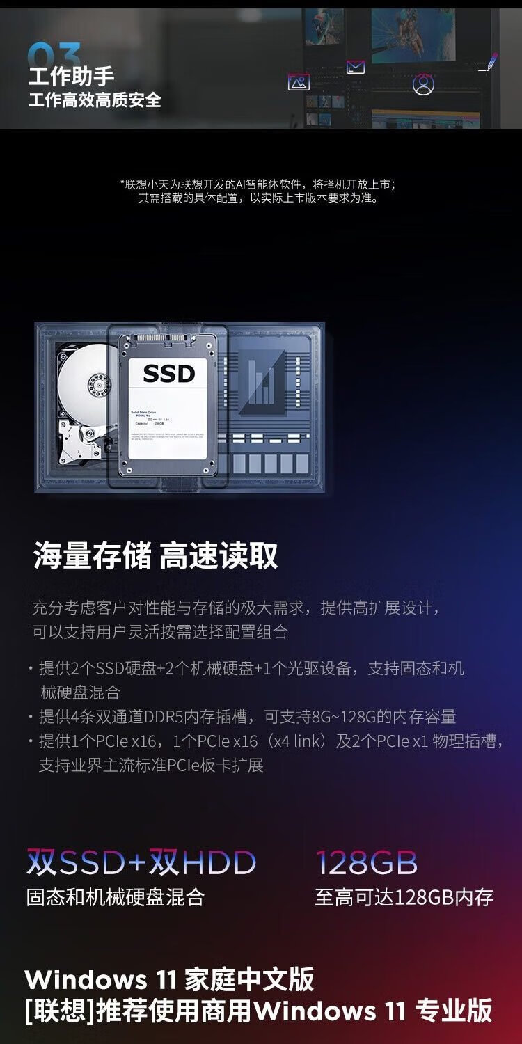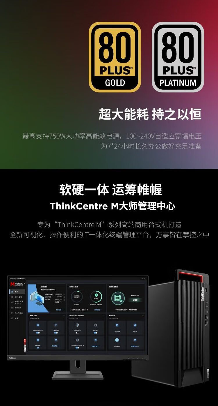 联想(Lenovo)ThinkCentre M950T M960T 酷睿14/13代台式主机电脑高端商用办公绘图设计3D渲染建模支持按需定制 【M950T】酷睿I5-13500 14核2.5G 16G内存丨512G固态+1T硬盘丨集显