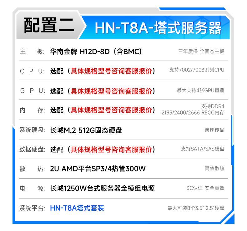 South China Gold Medal HN-T12A Desktop Tower Multi-disk AMD Customizable Server/ERP/Enterprise OA System/File Storage/DeepSeek Localized Deployment Configuration 3 HN-T4A