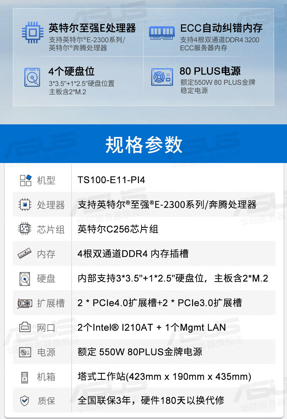 ASUS tower server host small ERP desktop computer TS100-E11-PI4 Xeon E-2146G 3.5G 6 cores 12 threads recommended 16G memory/1T solid state/integrated display