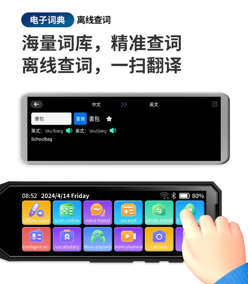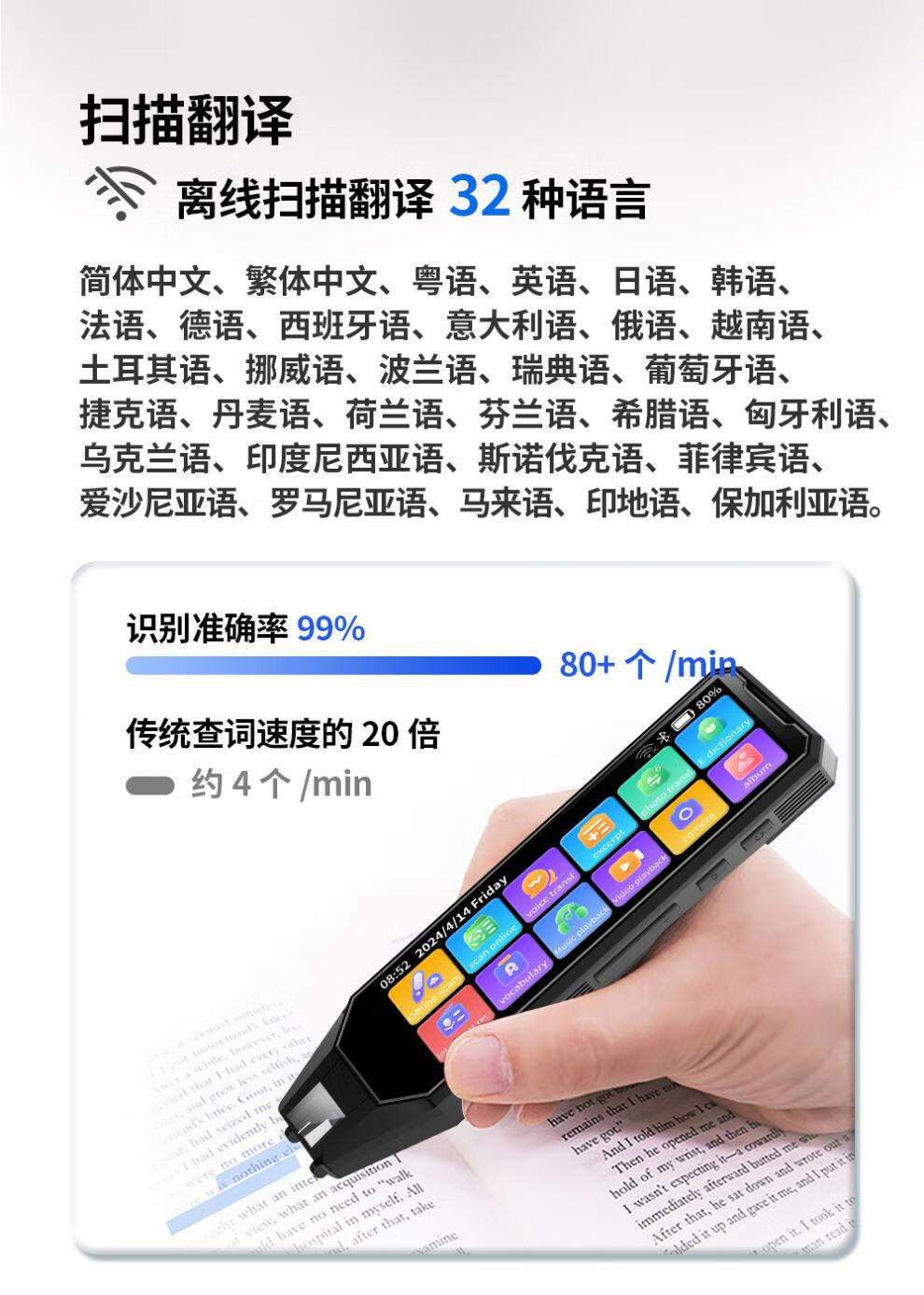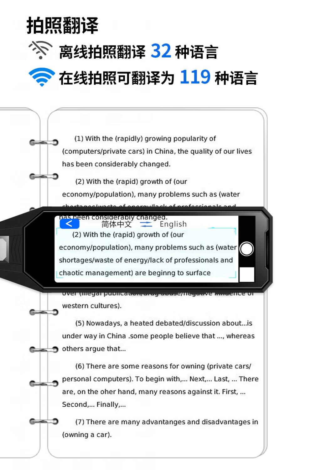 阿尔法多国语言翻译笔俄语法语英语日语韩语德语粤语繁体离线点读 送充电器+硅胶套+收纳盒+蓝牙耳机 5.0寸屏/白色512G(粤语繁体离线扫描12种