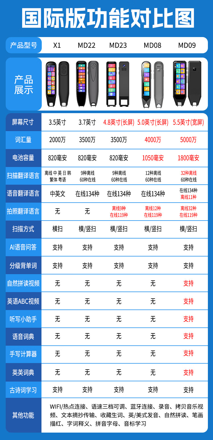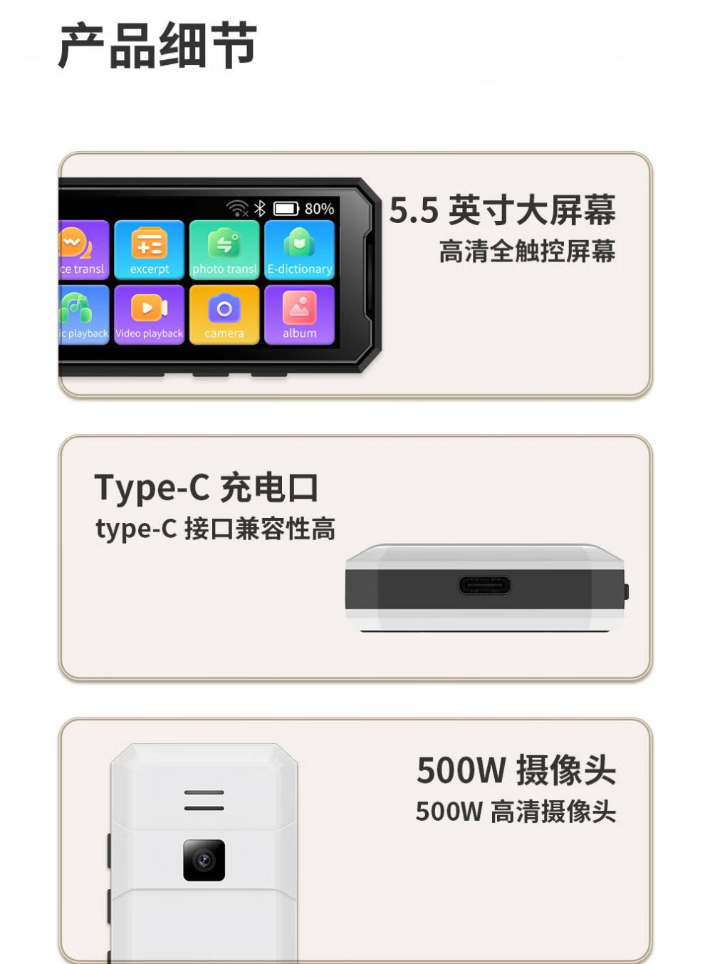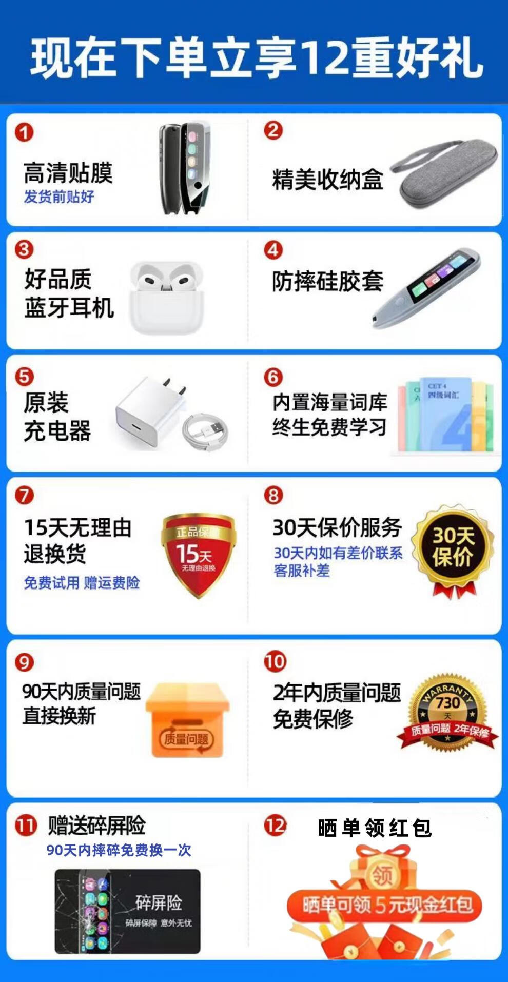 阿尔法多国语言翻译笔俄语法语英语日语韩语德语粤语繁体离线点读 送充电器+硅胶套+收纳盒+蓝牙耳机 5.0寸屏/白色512G(粤语繁体离线扫描12种