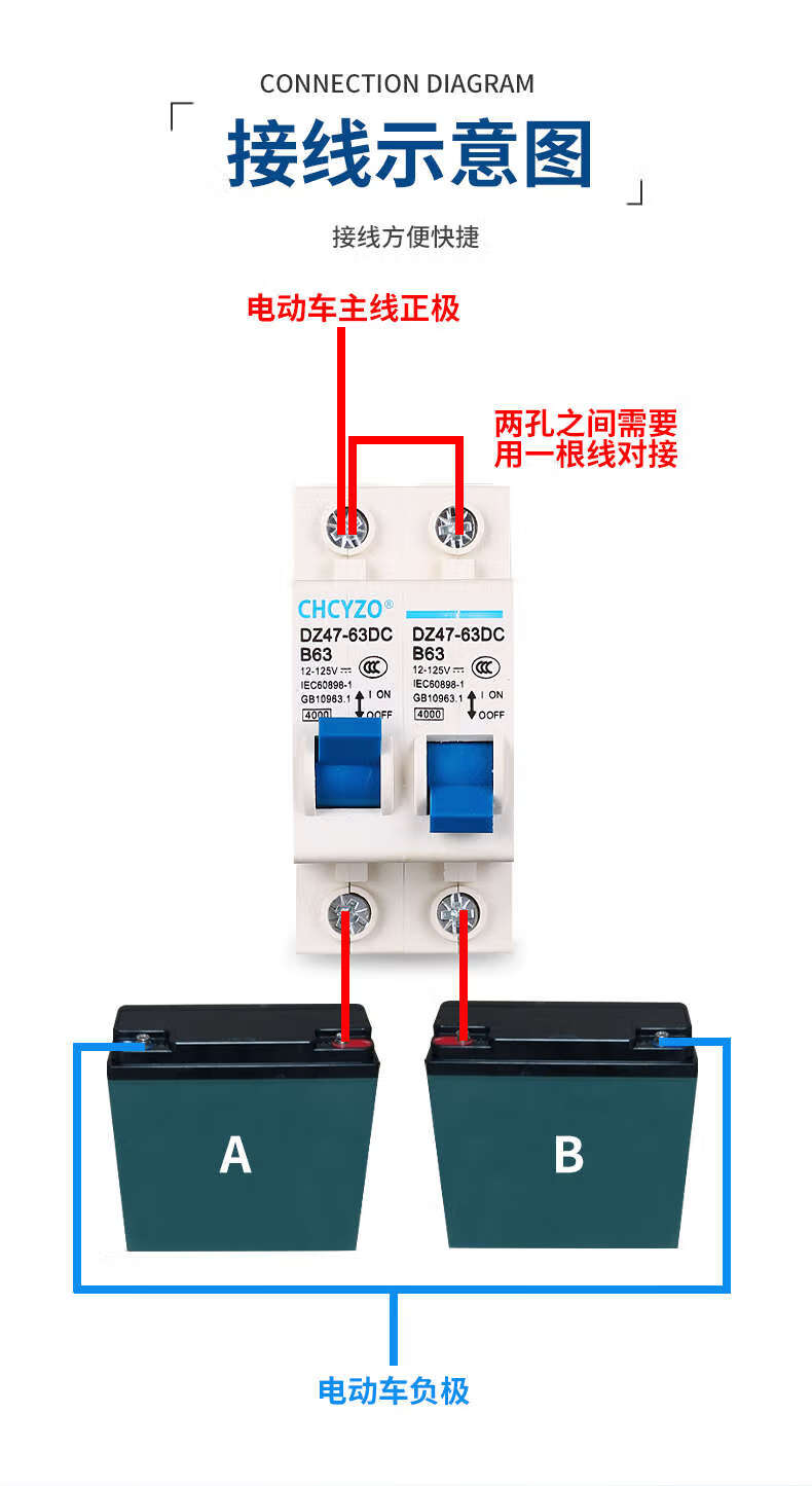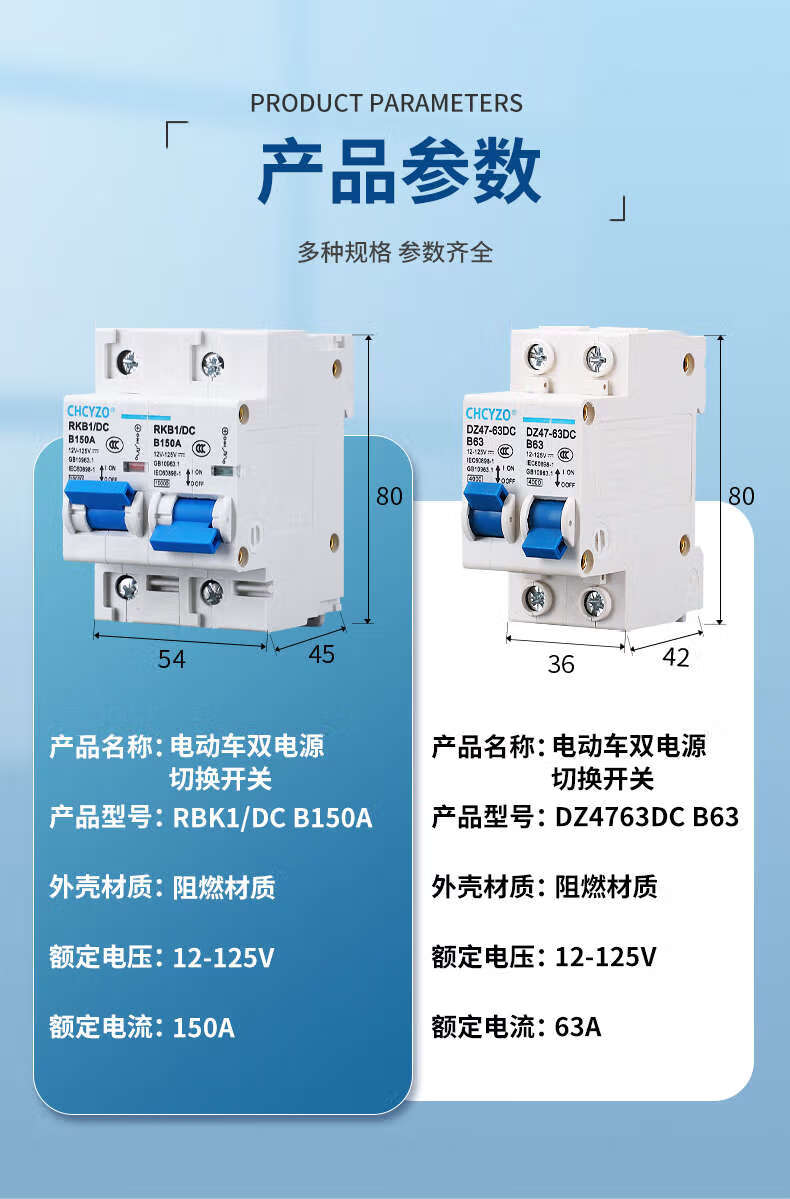 Interruptor de transferencia de batería dual para vehículo eléctrico, disyuntor de CC de 72V60V, 63A, interruptor de enclavamiento de transferencia de fuente de alimentación dual, interruptor de transferencia de 100A, 63A
