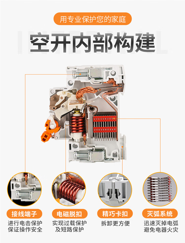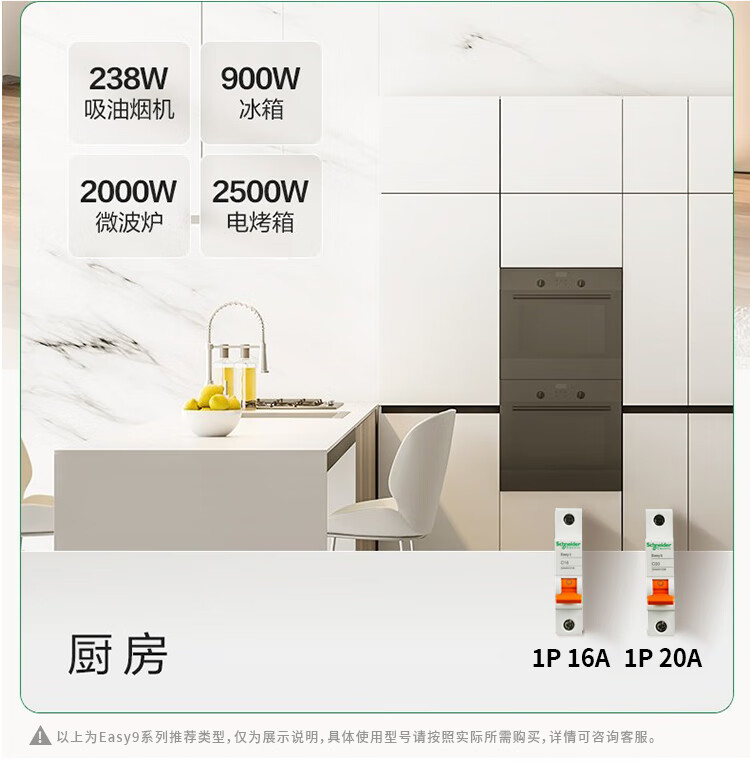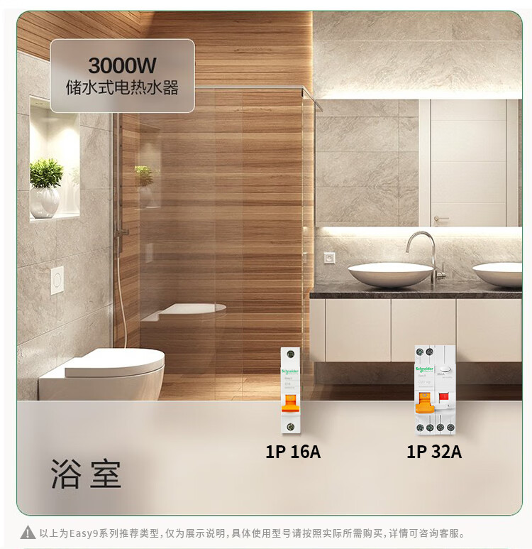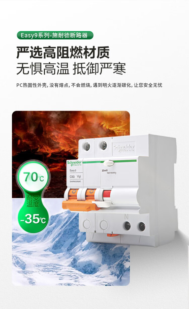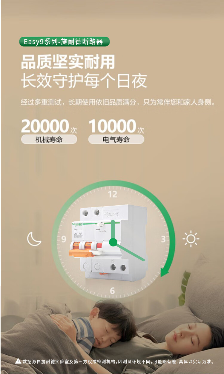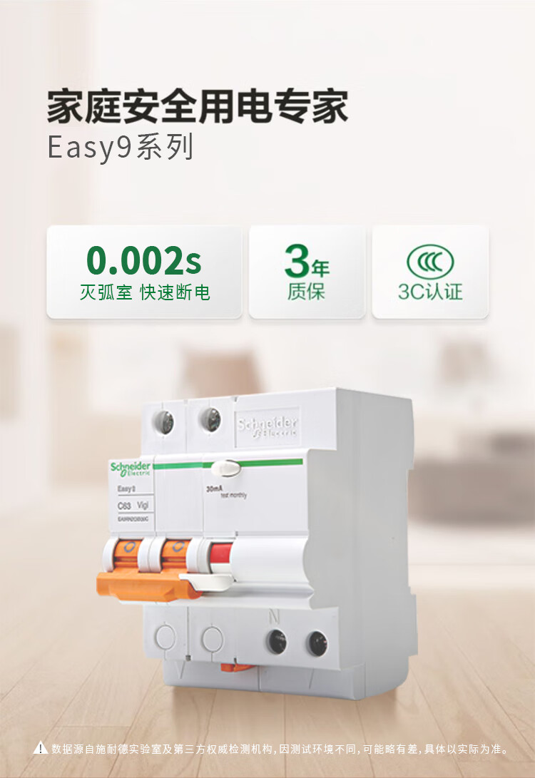 施耐德施耐德空气开关断路器 E9家用空开1P16A~63A 1P+N 2P 3P 4P断路器 4P漏电保护器 40A