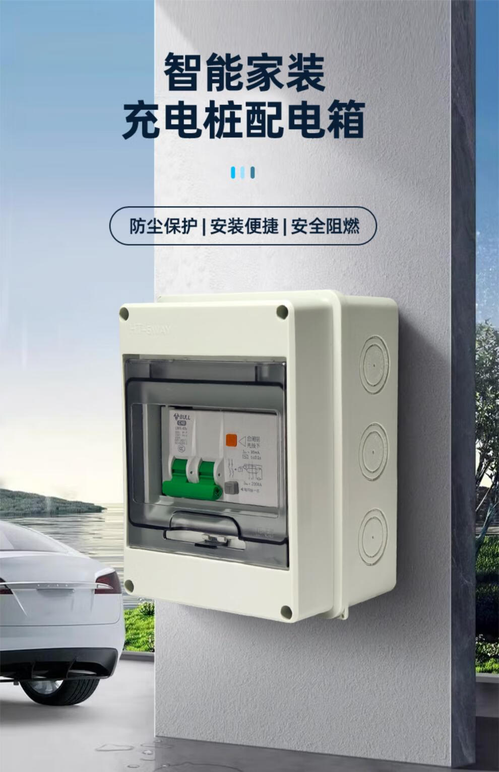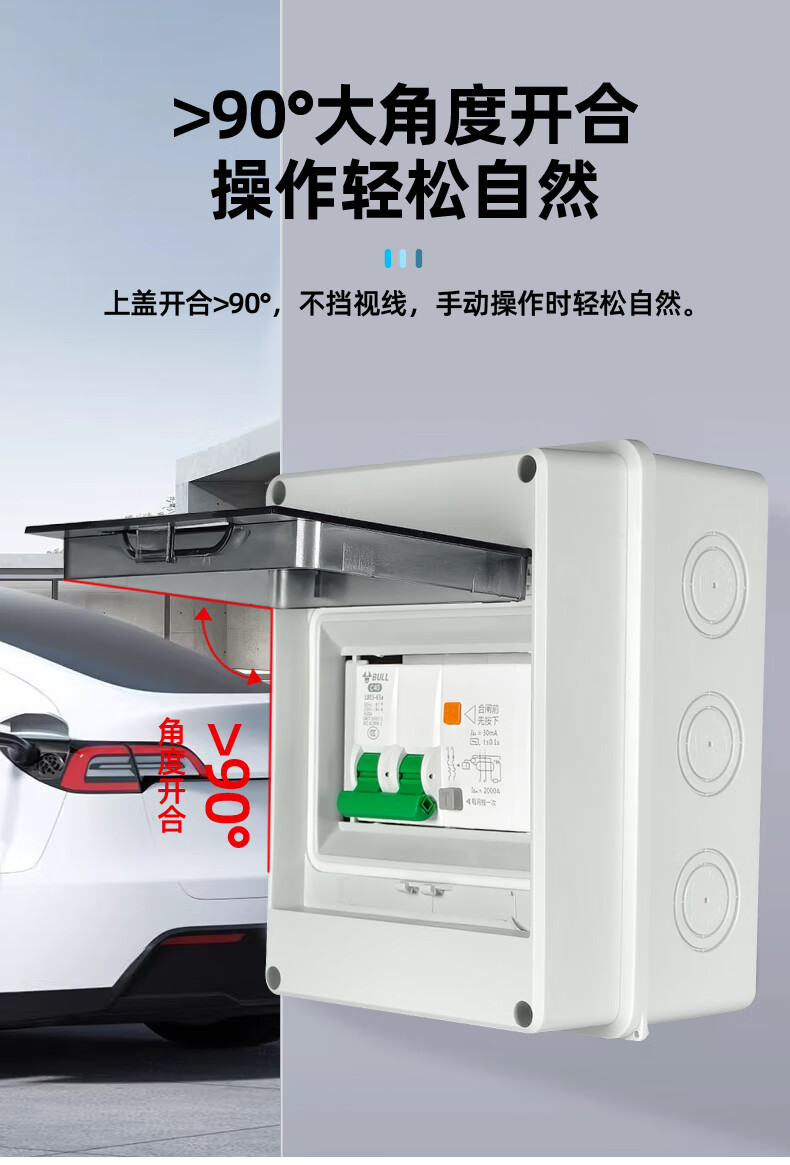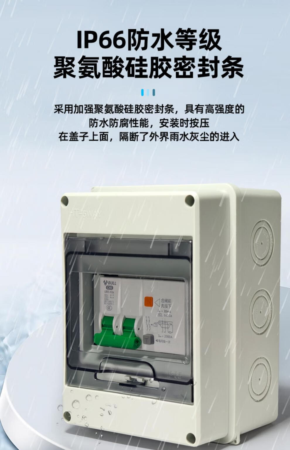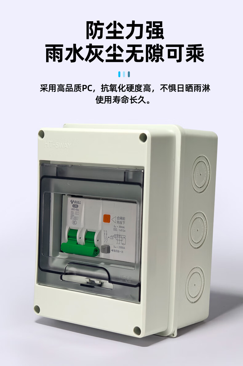 公牛7kw充电桩套装室外明装配电箱家用2P漏电开关防雨保护HT盒子 5回路明装箱