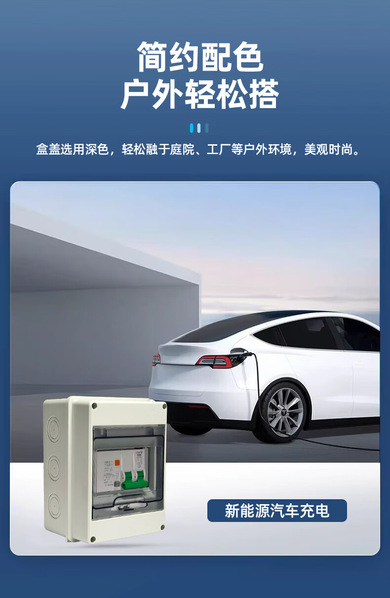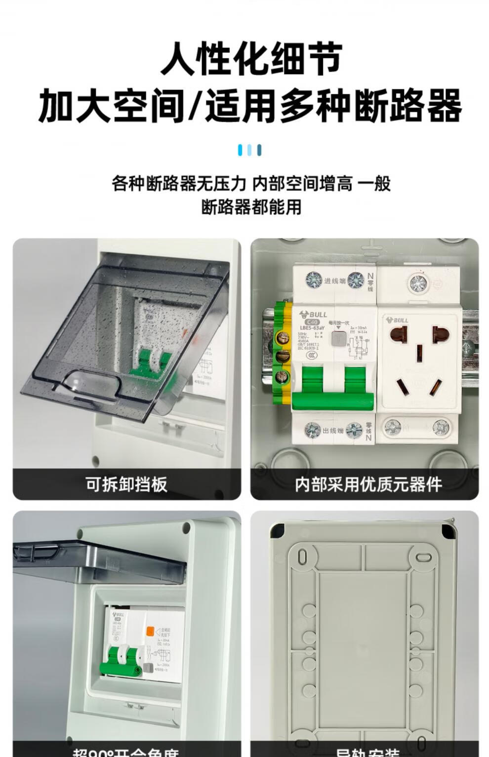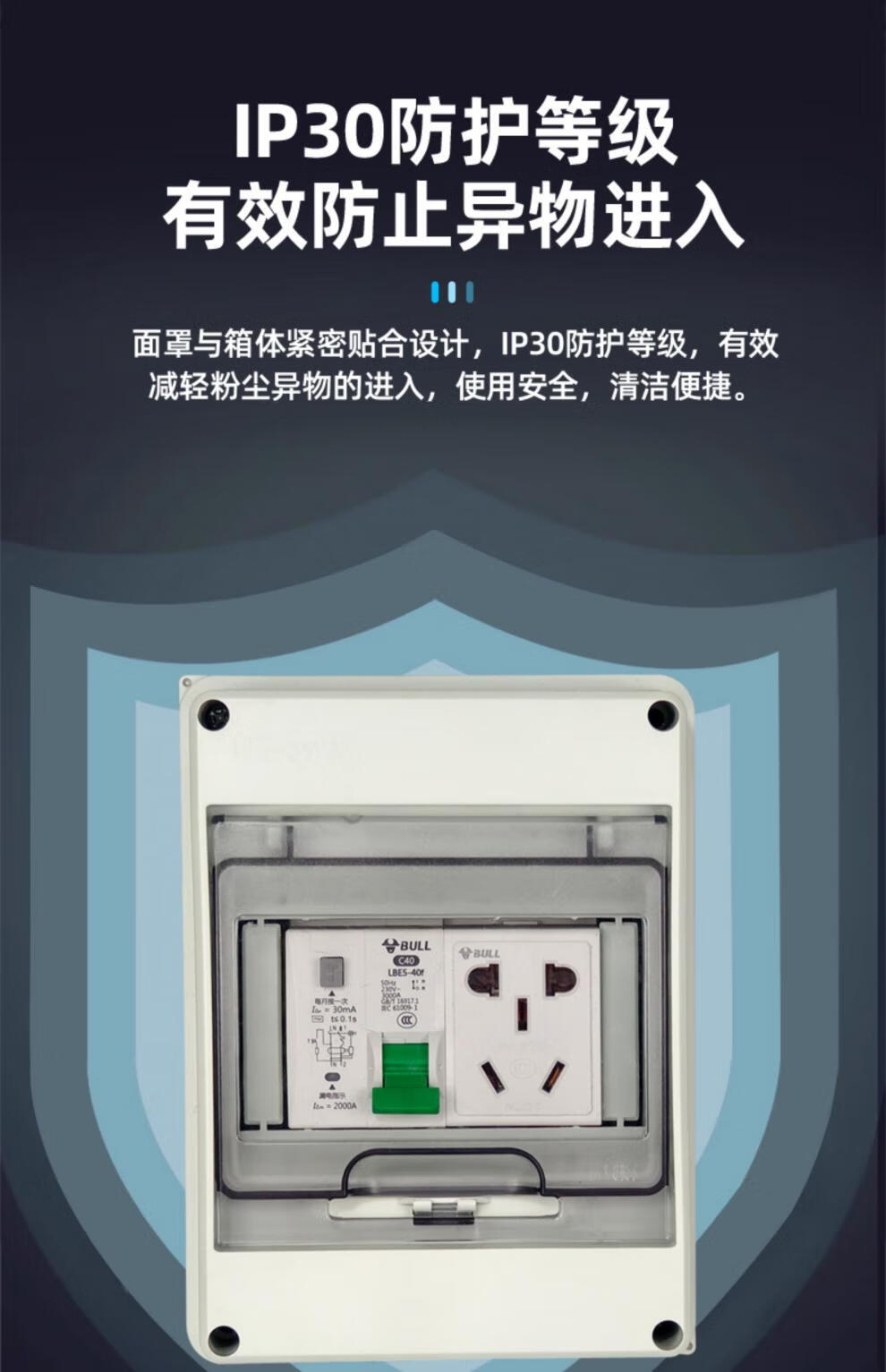 公牛7kw充电桩套装室外明装配电箱家用2P漏电开关防雨保护HT盒子 5回路明装箱