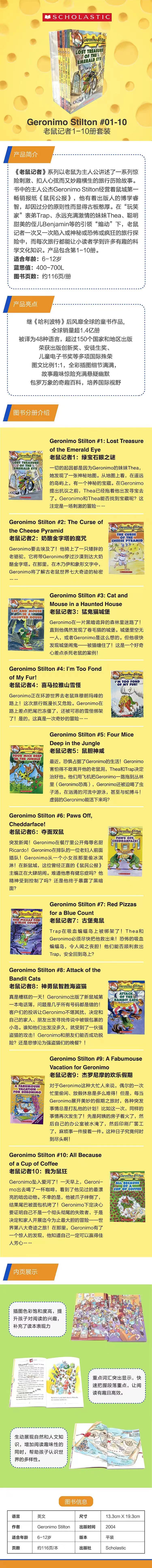 进口原版 老鼠记者 1-10册 赠音频 Geronimo Stilton 全彩插图安徒生童话大奖 英文原版 儿童探险章节桥梁书 蓝思400-700L 6-12岁美国学乐出版社 小学教辅