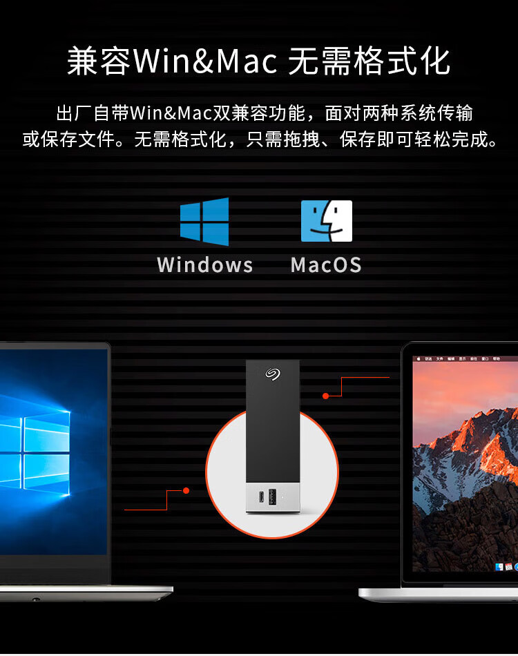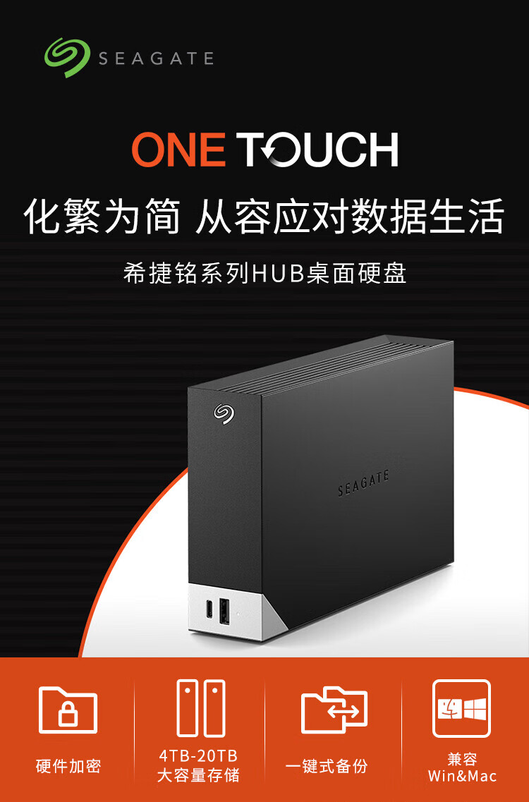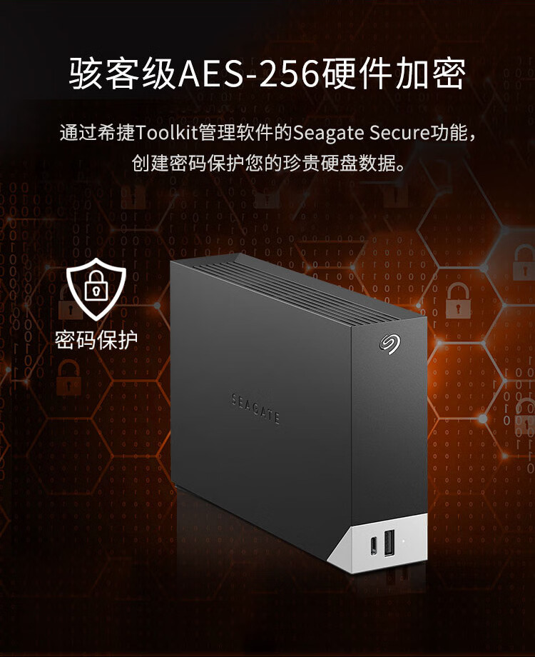 希捷(SEAGATE)桌面移动硬盘14TB USB HUB 3.5英寸 大容量外接存储 自动备份 兼容MAC 保护隐私 原厂数据恢复服务