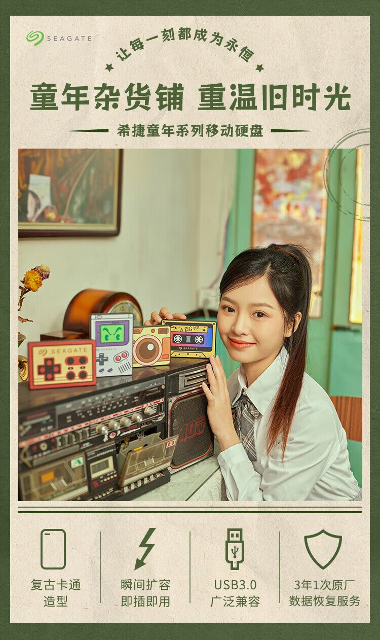 希捷(SEAGATE)移动硬盘 1TB USB3.0高速 机械硬盘 兼容Mac 便捷 童年小手柄 黄金高玩 数据恢复服务 外接存储