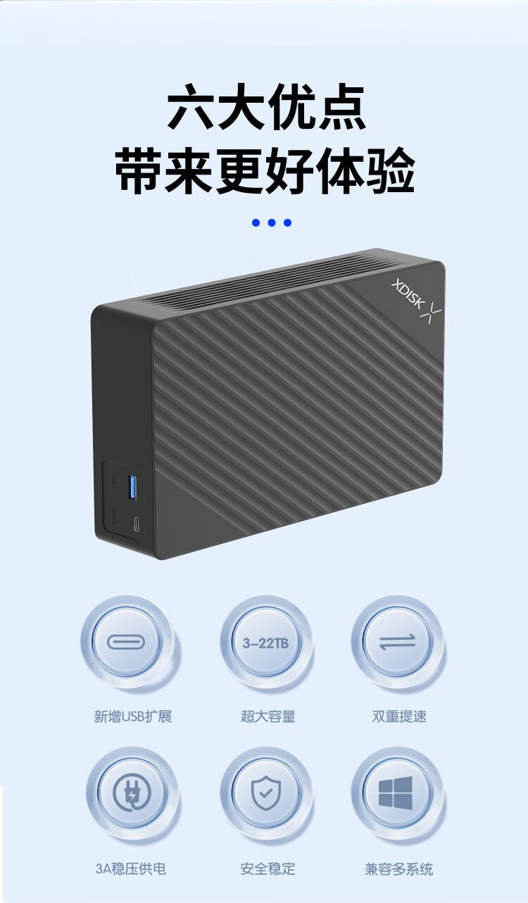 Kleine Festplatte (XDISK) 3 TB mobile Festplatte USB3.1-Desktop-Festplatte TypeC-Dockingstation Hochgeschwindigkeitsfestplatte High-End-Festplatte mit großer Kapazität 3,5-Zoll-Speicher Home Data Warehouse