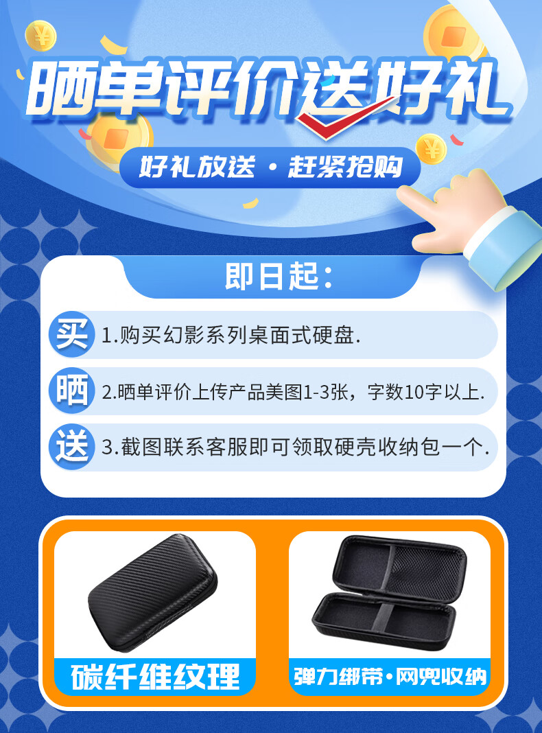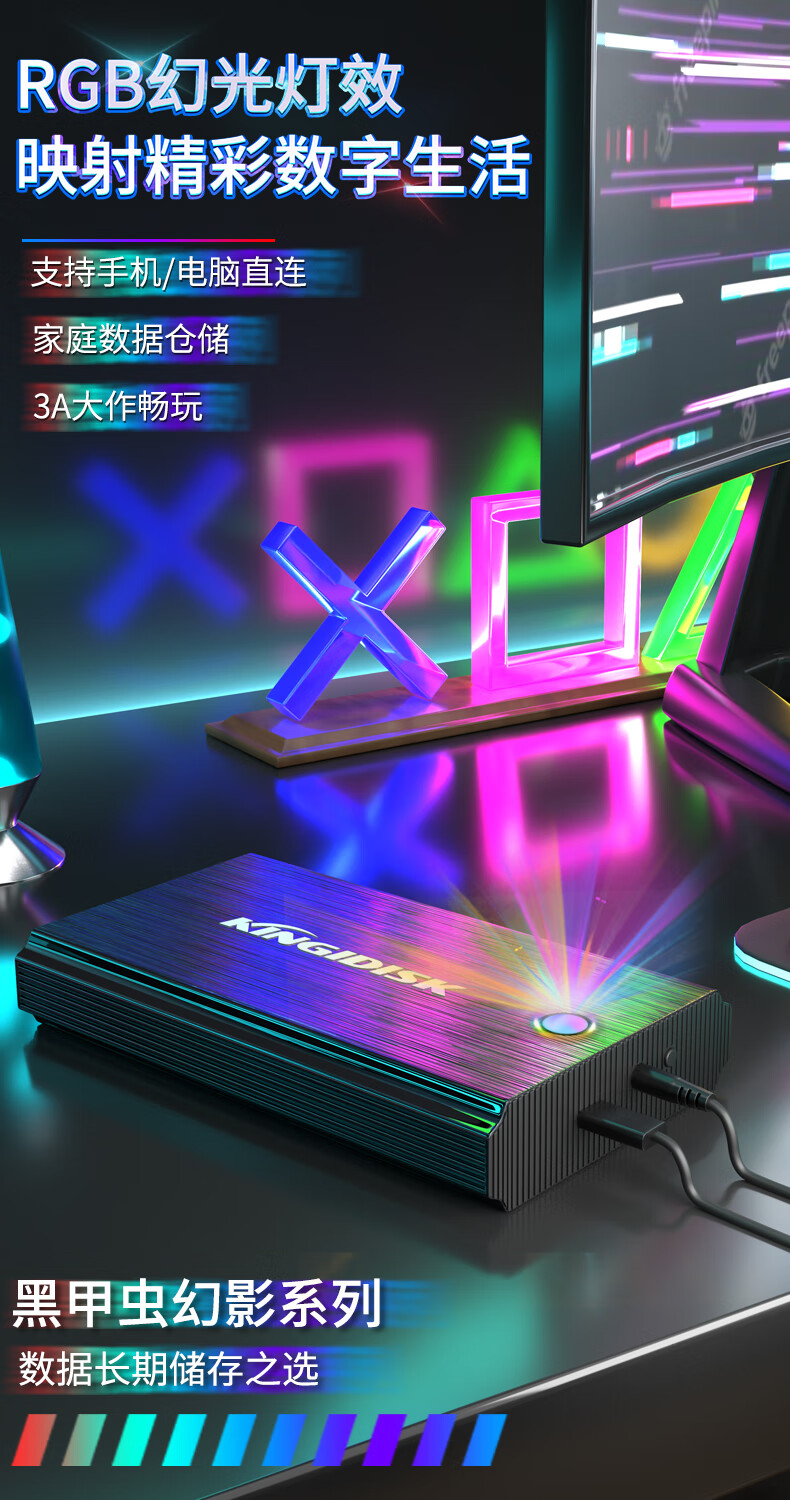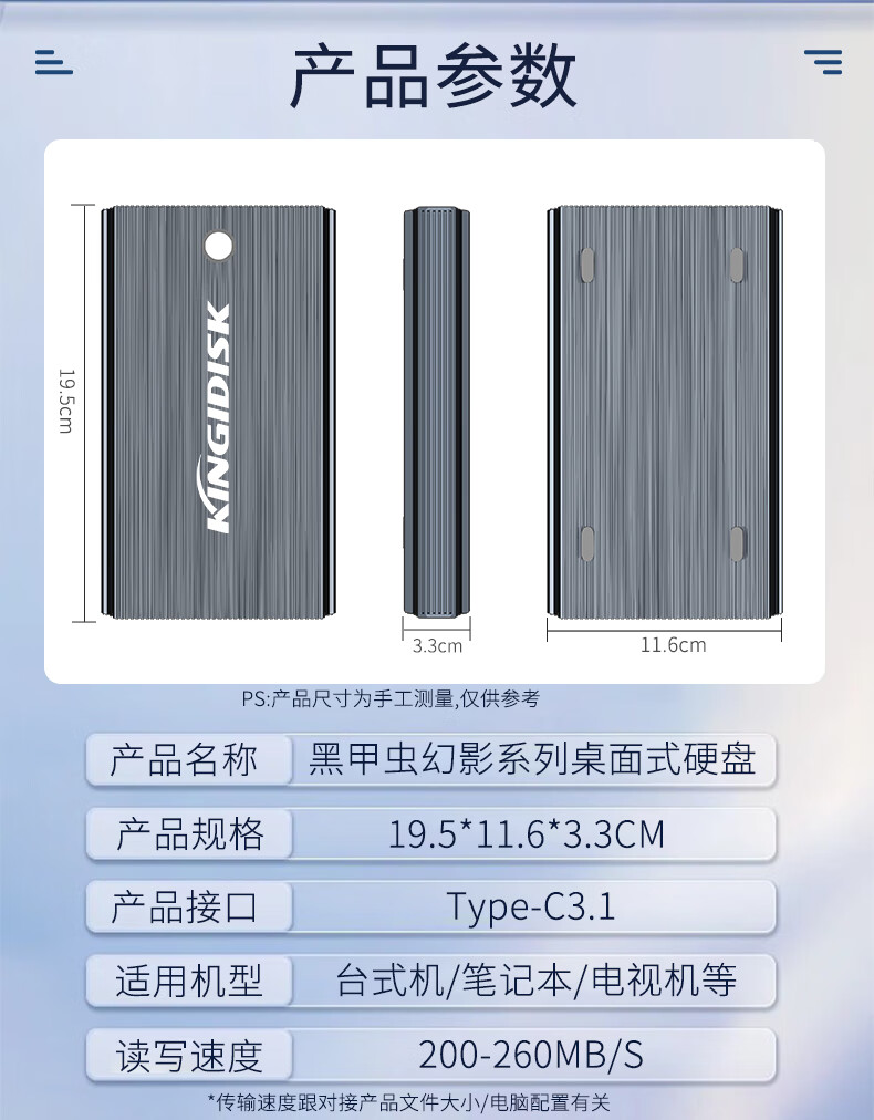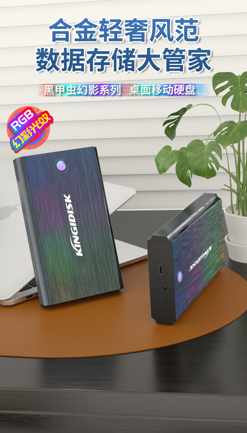 黑甲虫(KINGIDISK)3TB 移动硬盘 3.5英寸 Type-C3.1桌面存储 幻影系列 金属机身 数据仓库 游戏畅玩