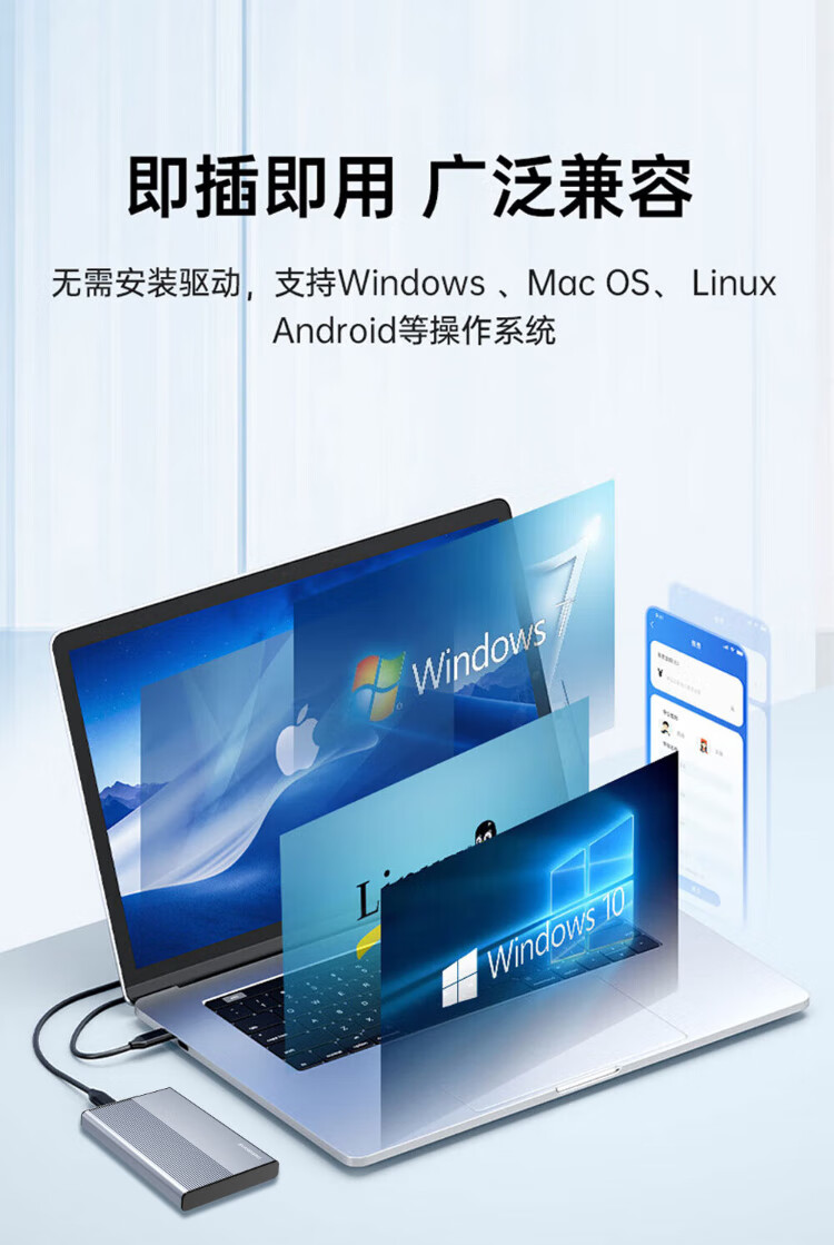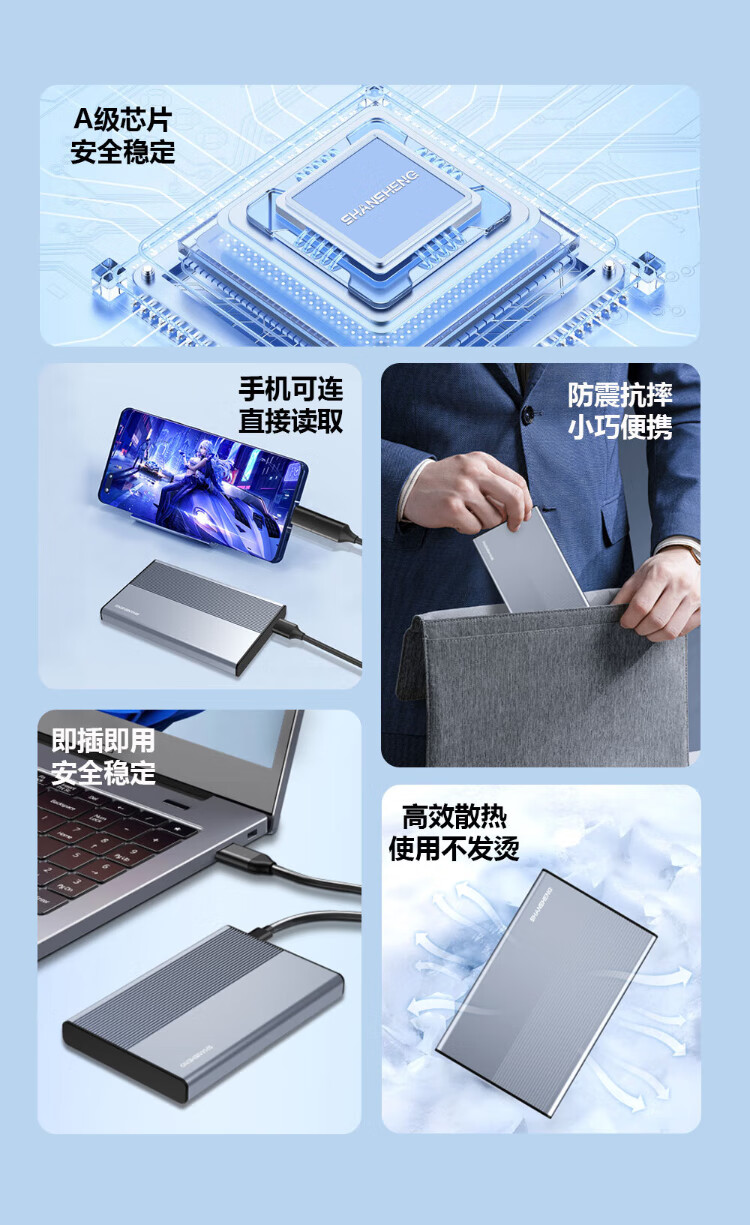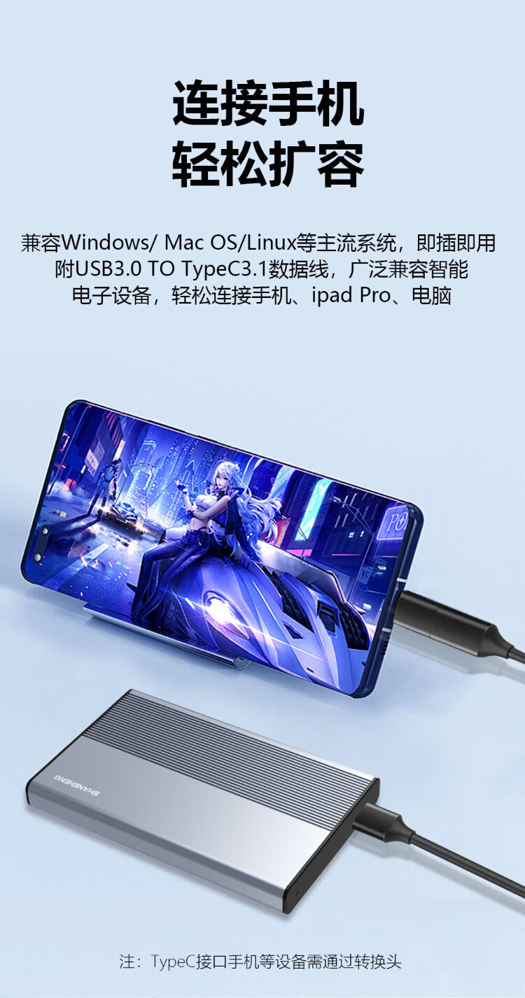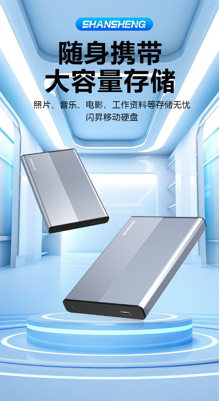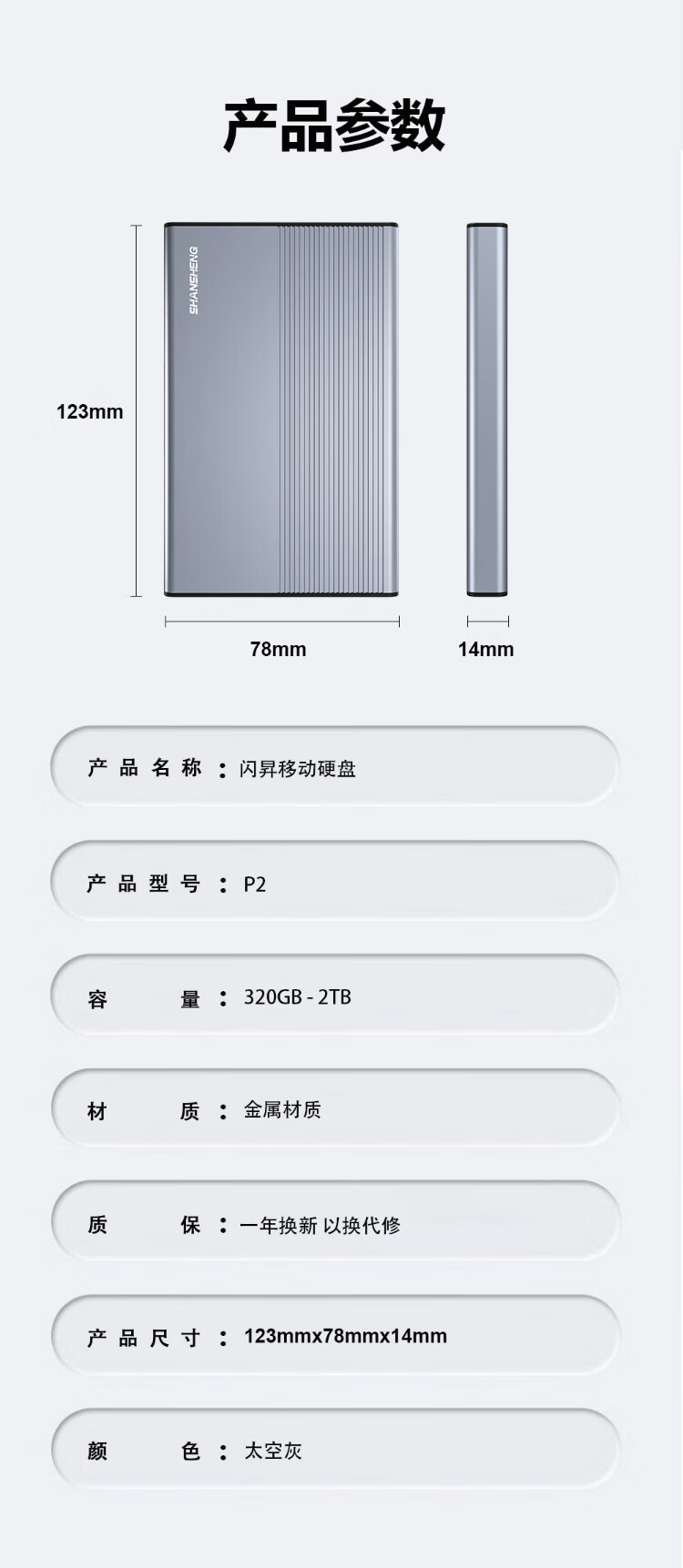 闪昇2TB移动硬盘Type-C金属高速硬盘2.5英寸P2外接电脑外置硬盘存储数据照片手机电脑两用270MB/S