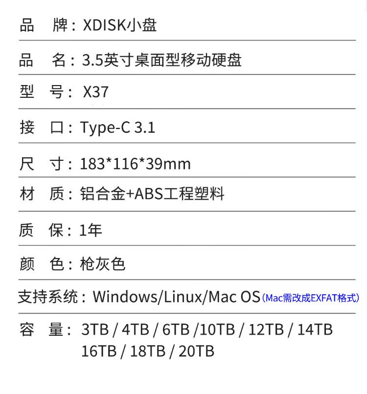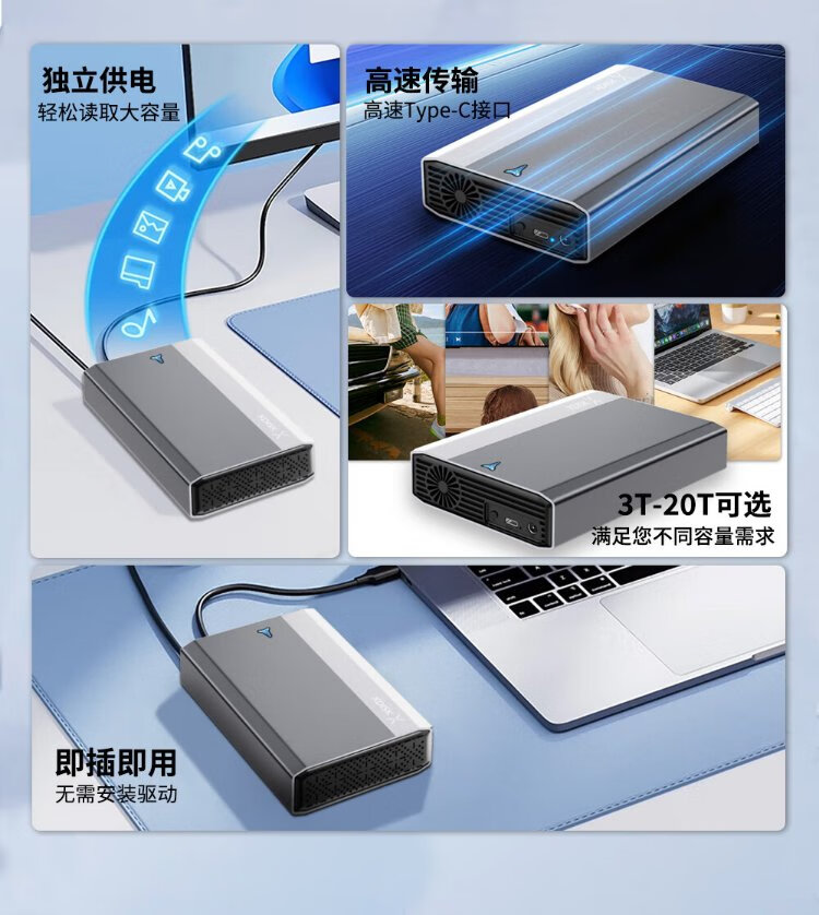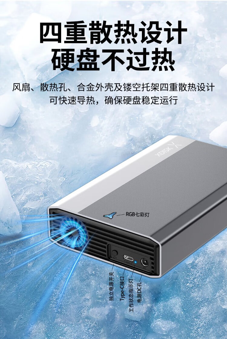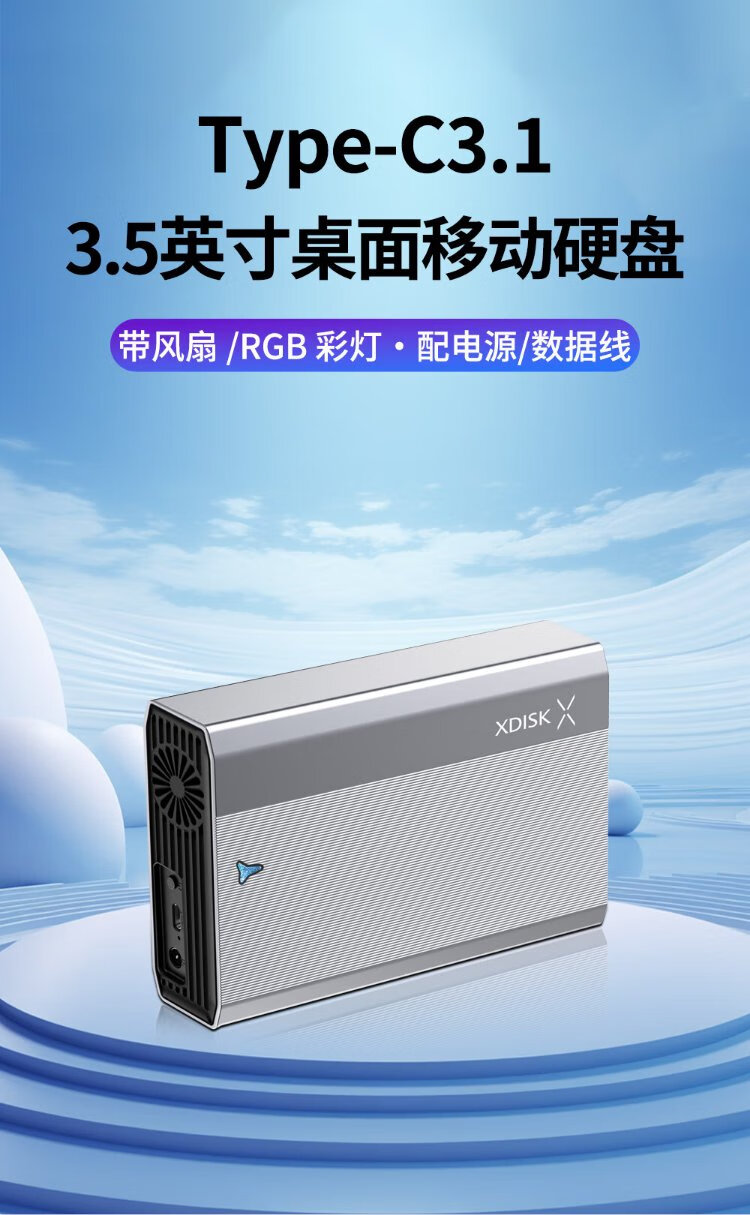 Small disk (XDISK) 4TB mobile hard disk desktop storage Type-C high-speed large-capacity storage 3.5-inch metal appearance built-in fan computer external mobile mechanical hard disk