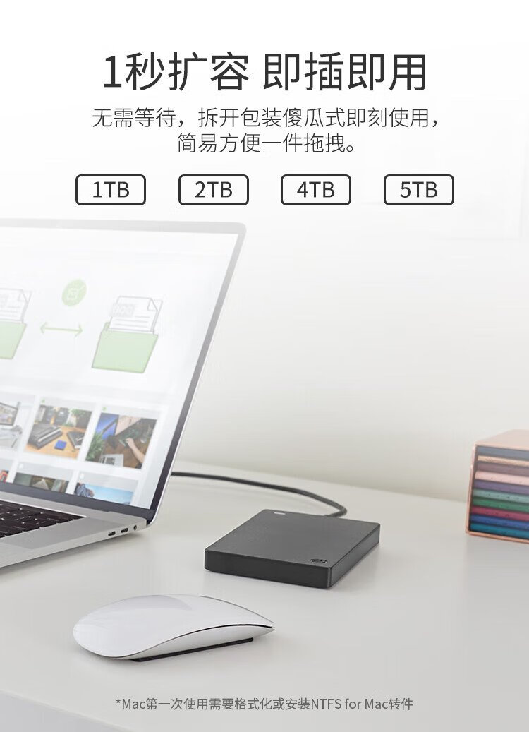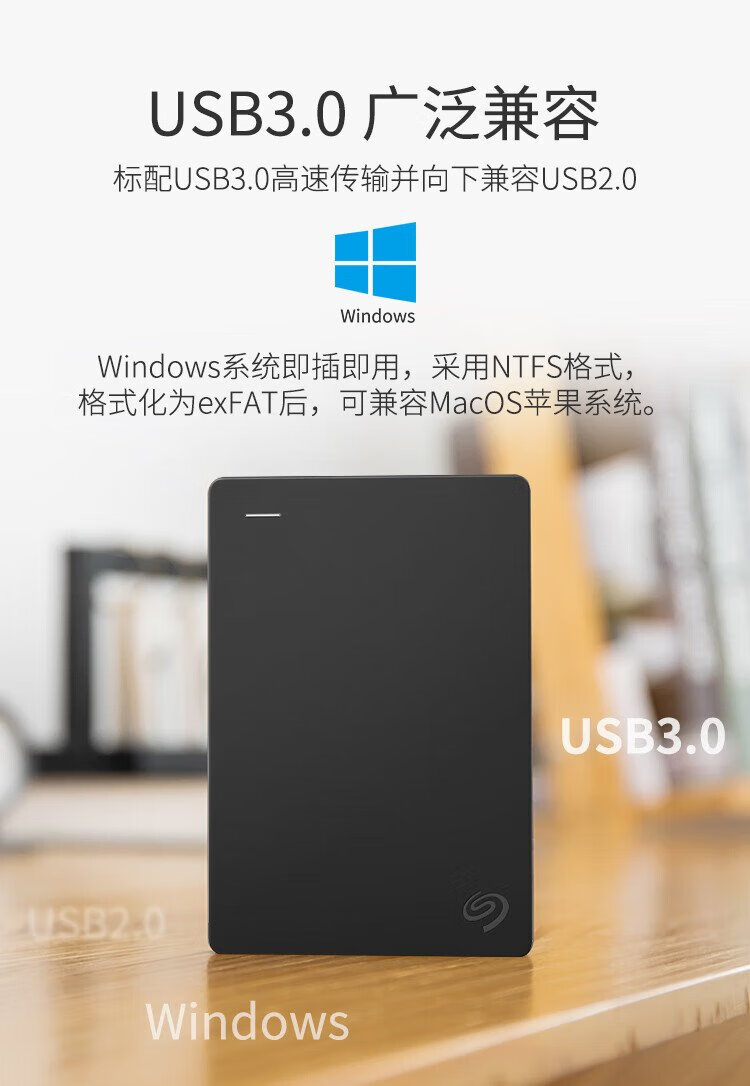 希捷(SEAGATE)移动硬盘 USB3.0 简系列 2.5英寸机械硬盘 商务简约 高速 便携易用 兼容MAC  暗夜黑色【含数据恢复服务】 1TB 官方标配+硬盘包