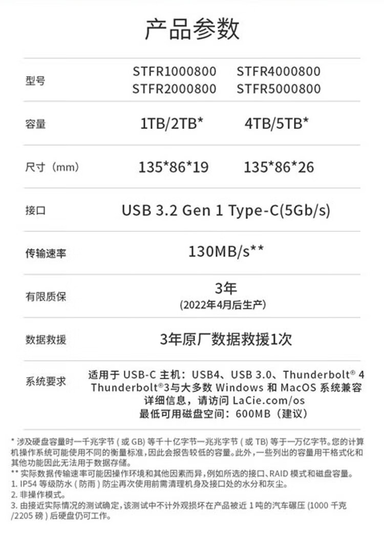 LaCie Mobile Hard Drive Type-C/USB3.2 Rugged USB3.2-C Set Version 2TB