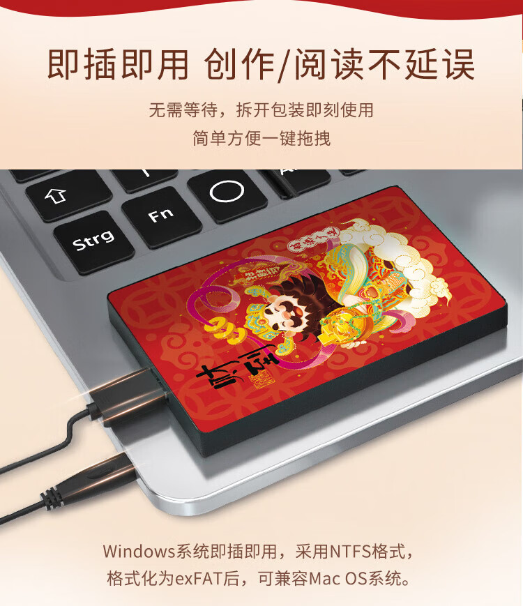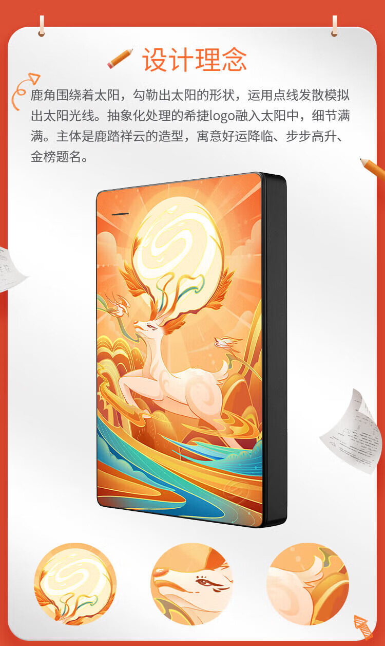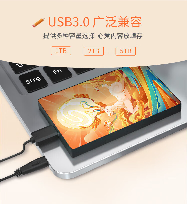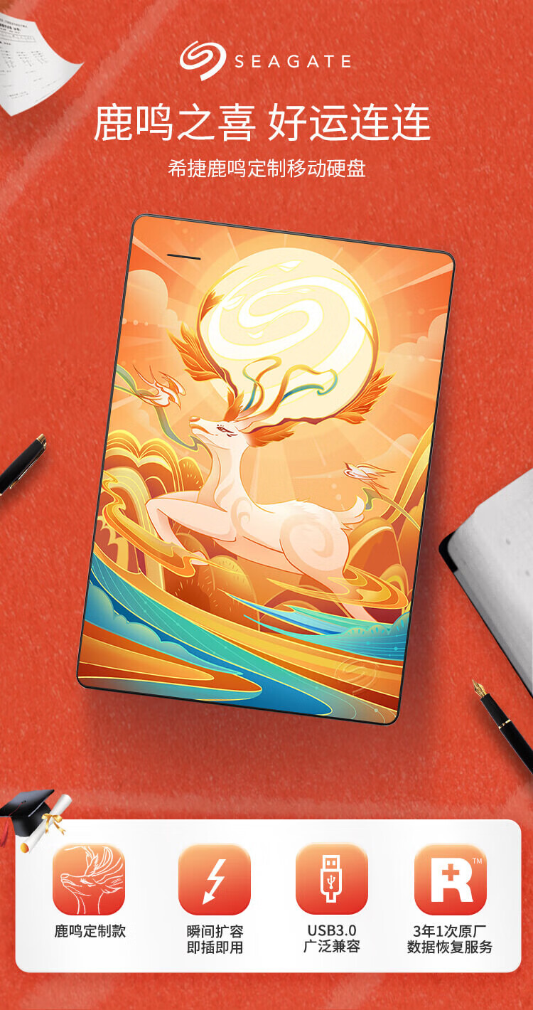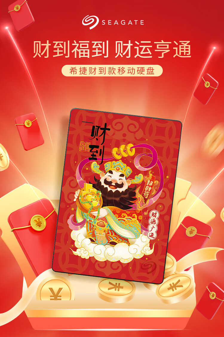 希捷(SEAGATE)移动硬盘机械 简系列 个性彩绘设计款 USB3.0 定制移动硬盘 高速便携 节日生日礼品送礼 兼容MAC 【财到】祝财源广进 2TB 送硬盘包