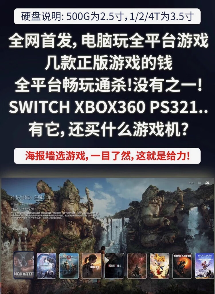 Game mobile hard drive plug and play 1TB single machine 3A large popular games optional installation-free 500g plug and play