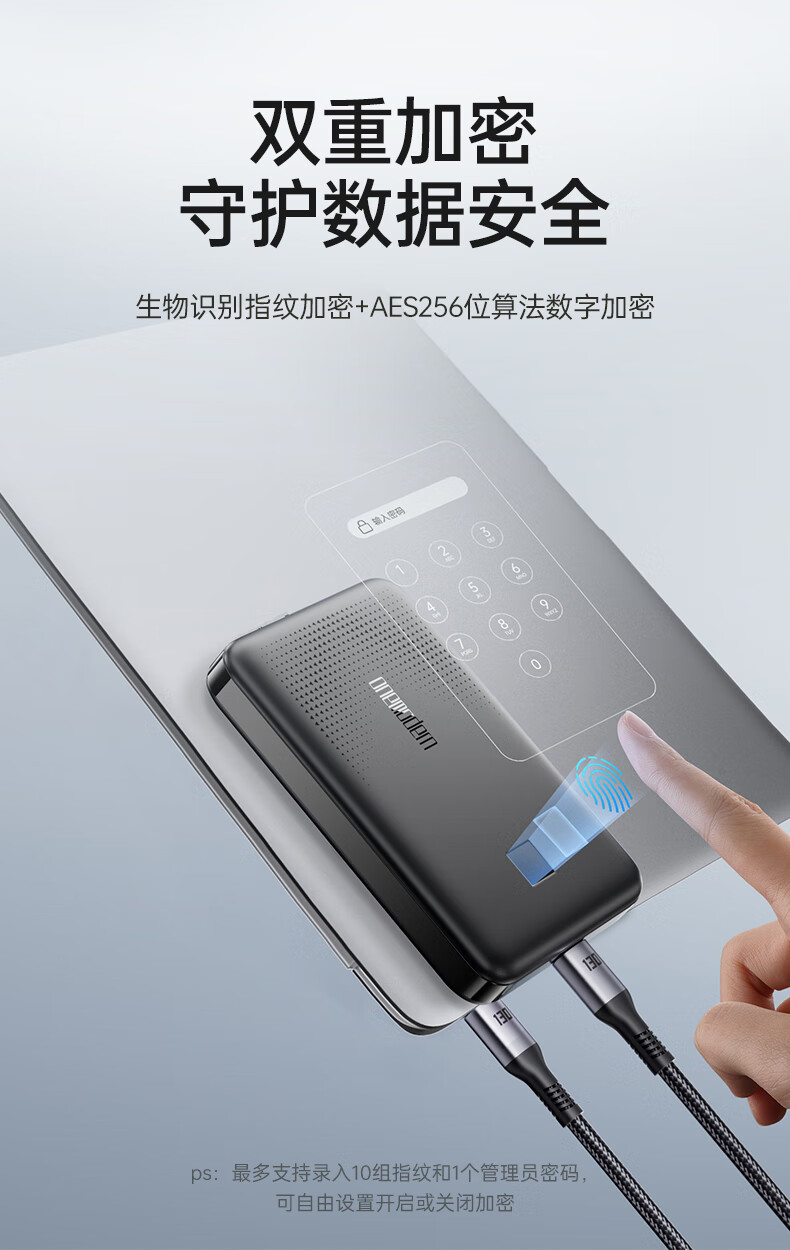 Onemodern mobile mechanical hard drive 1TB fingerprint encryption speed 130MB/s dual disk backup Type-c interface laptop external external storage office M3-fingerprint + digital encryption 2TB