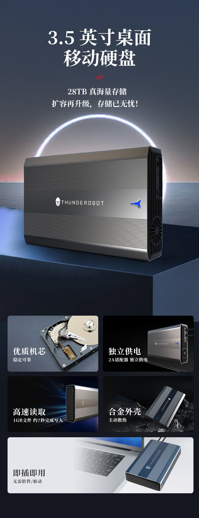 THUNDEROBOT雷神3t移动硬盘6t3.5英寸大容量桌面存储type-c高速台式机笔记本外接机械硬盘4t 18TB雷神飓风移动硬盘 独立开关+风扇散热
