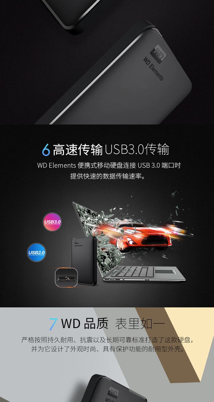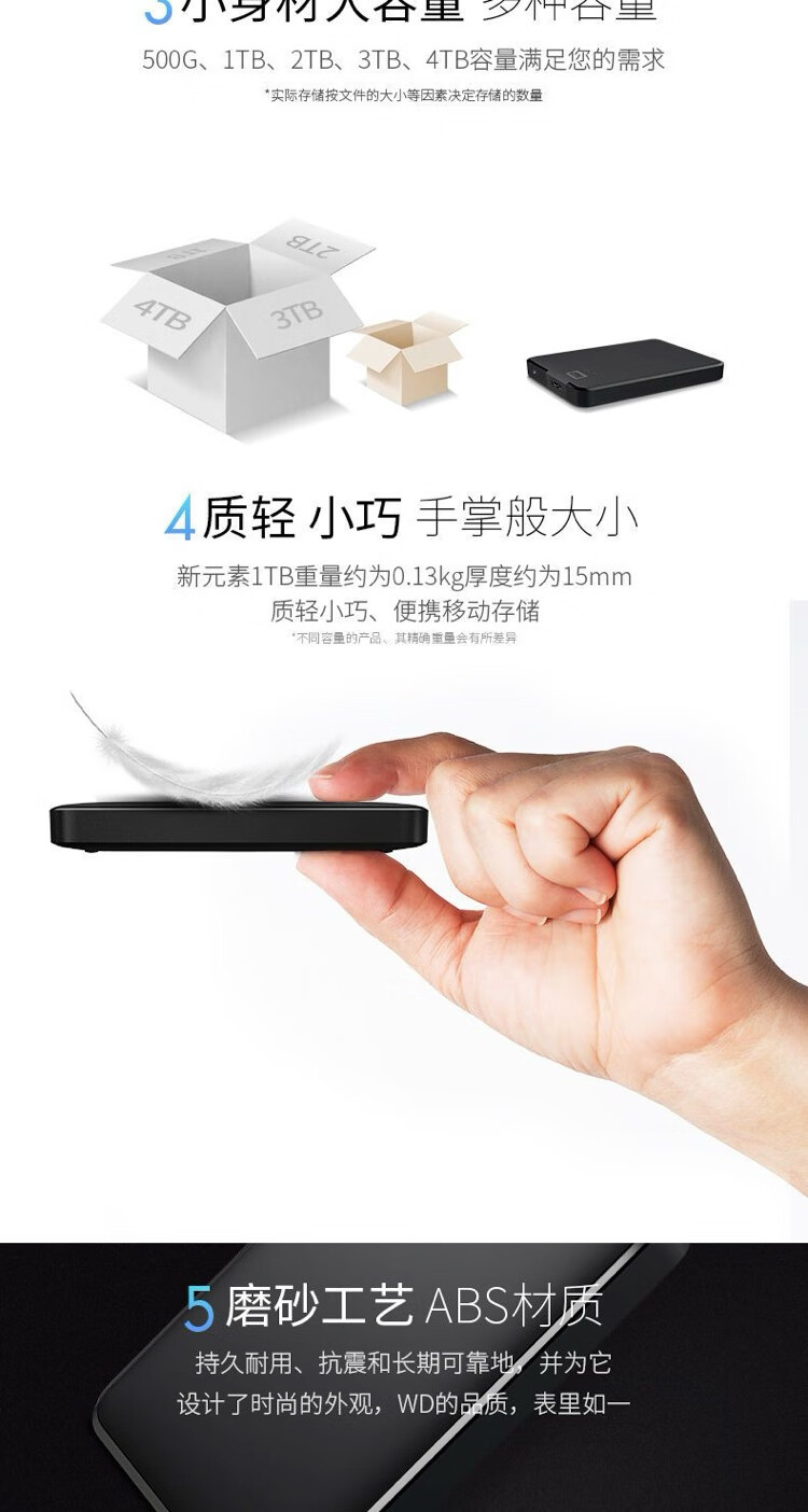 Western Digital WD Western Digital mobile Festplatte 500G/1T Solid-State-U-Disk unterstützt externe mobile Hochgeschwindigkeitsfestplatte für Mobiltelefone und Computer, schwarz, 500 GB, Paket eins
