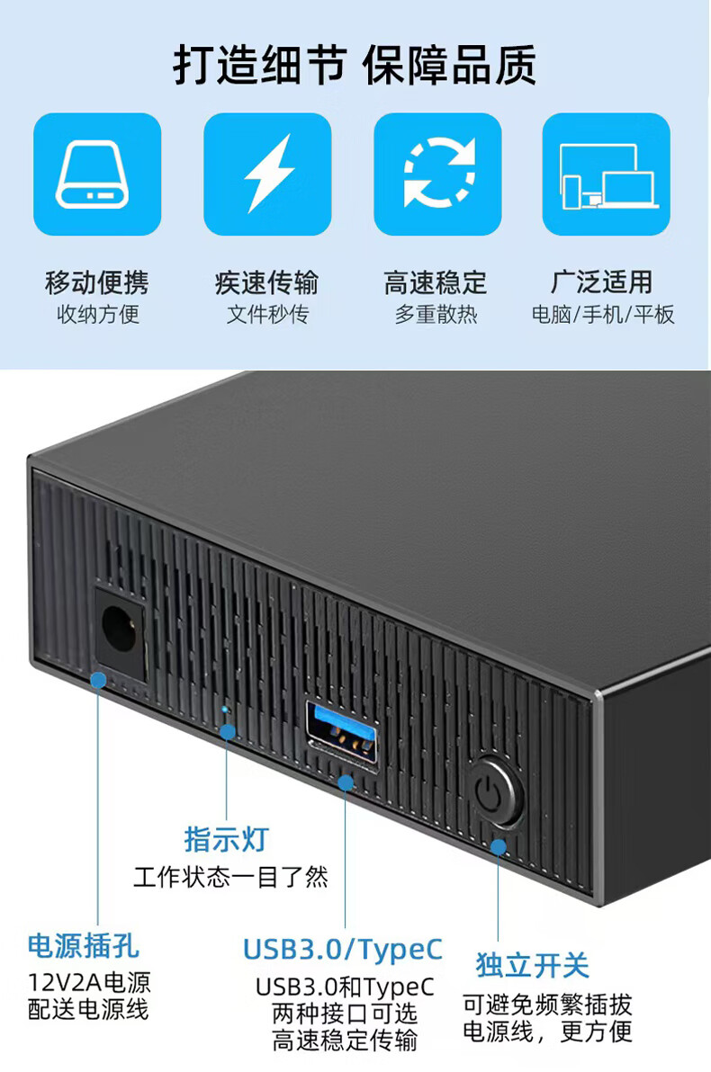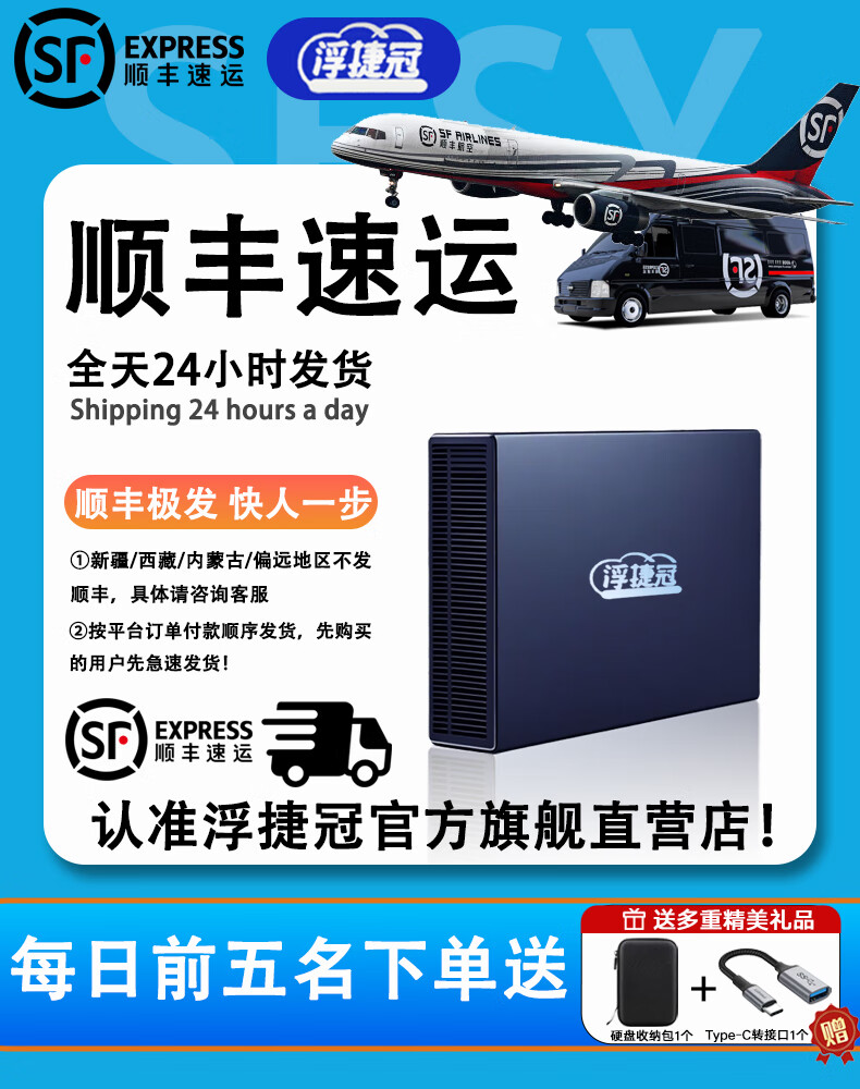 浮捷冠2TB移动硬盘3t大容量高速游戏6t存储桌面8t硬盘4t金属硬盘 6TB