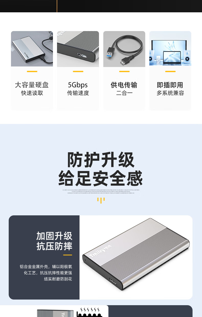 TRAILSYVAN【真容量不虚标】500GB便携式储存器移动机械硬盘USB3.0手机电脑高速2.5寸稳定外接硬盘外接储存 320GB